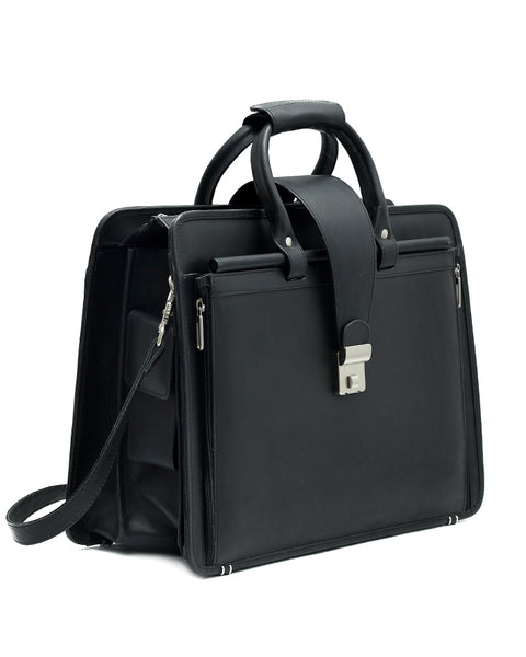 Sleek black leather laptop bag designed for professionals. Features spacious compartments, a laptop partition, and a comfortable shoulder strap for stylish, organized, and secure office carry.- Rs.25,800