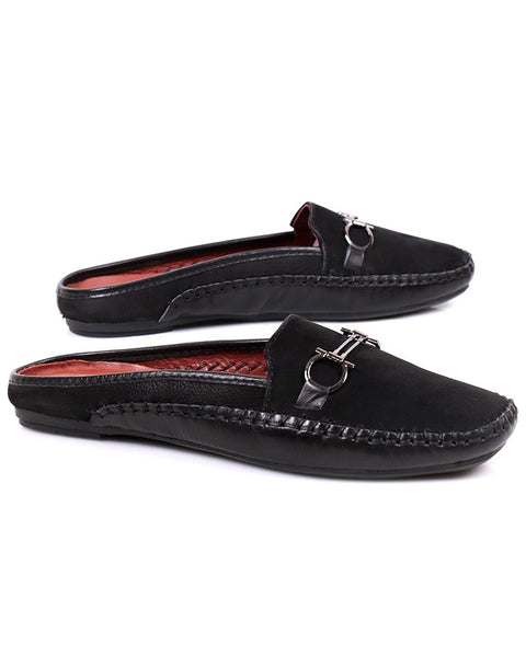 Black backless plain cow leather shoes designed for elegance and comfort. Durable and versatile, ideal for daily wear or casual occasions.- Rs.3,499