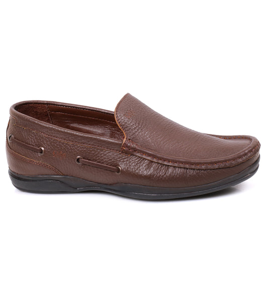 Upgrade your style with these brown leather moccasins, crafted from premium cow leather. Featuring a lightweight PVC sole, leather lining, and a timeless plain design, they offer durability and comfort. Perfect for casual or semi-formal occasions.- Rs.6,749
