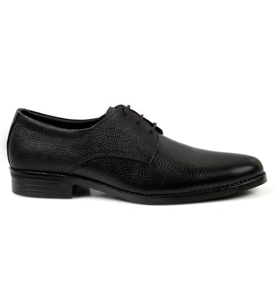 Black lace-up formal shoes made from milled cow leather with a rubber sole for comfort. Elegant and durable, ideal for professional and semi-formal occasions.- Rs.5,000