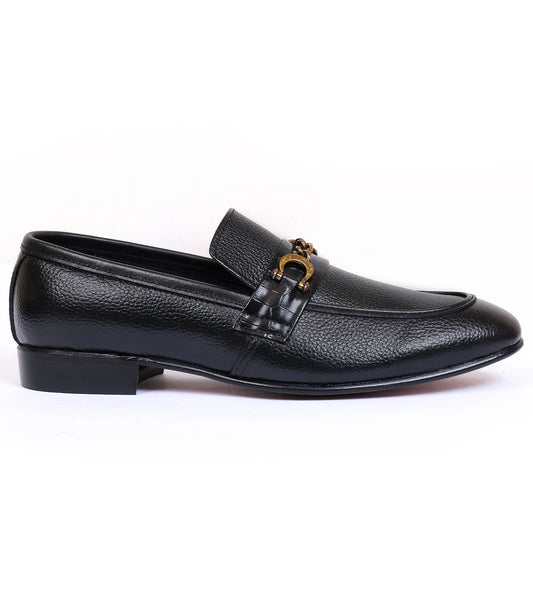 Crafted for elegance, these black slip-on shoes feature genuine cow leather with a sleek plain finish. The leather sole and lining ensure long-lasting comfort. A versatile choice for office wear and formal occasions.- Rs.11,999