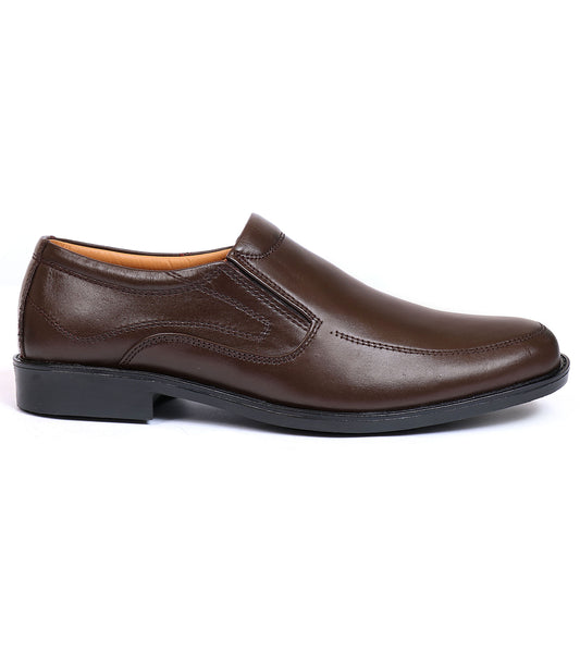 Step up your formal style with these brown slip-on shoes made from premium cow leather. With a classic plain design and comfortable leather sole, they offer a refined finish. Perfect for both office and special events.- Rs.11,999