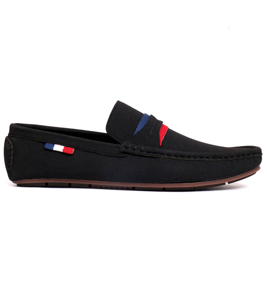 These black moccasins are designed with a crocodile-style cow leather finish for a bold look. Featuring a rubber sole, leather lining, and inner sole, they ensure comfort and durability. Perfect for adding elegance to casual wear.- Rs.6,999