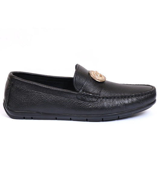 Step into comfort with these black moccasins crafted from premium cow leather. Built with a durable rubber sole and leather lining, they offer long-lasting wear. A classic design that matches effortlessly with casual outfits.- Rs.6,999