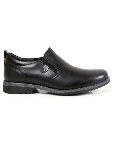 Black nubuck leather loafers with a refined embossed design. Built with a sturdy PVC sole, leather lining, and cushioned inner sole. A durable, stylish, and comfortable choice for daily casual wear.- Rs.3,599