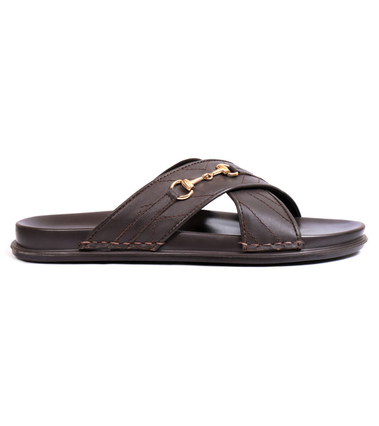 Sleek black cow leather slippers with durable PU sole and soft cushioned interior. Comfortable for home or casual use, combining elegance with long-lasting wear.- Rs.3,179
