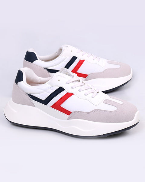White & black lace-up Skechers sneakers for men. Comfortable, durable, and stylish for everyday wear.- Rs.8,399
