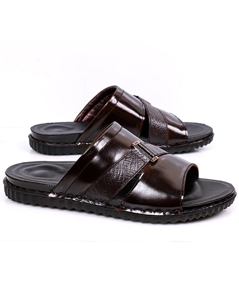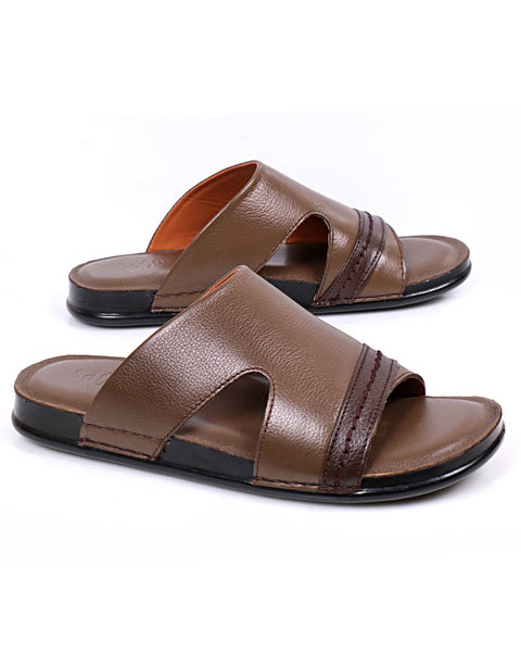 Upgrade your look with these brown leather slippers, crafted from premium leather with cushioned PU sole. Designed for comfort and timeless elegance, they are perfect for both casual wear and home lounging. A versatile wardrobe essential for men who value style and durability.- Rs.4,999