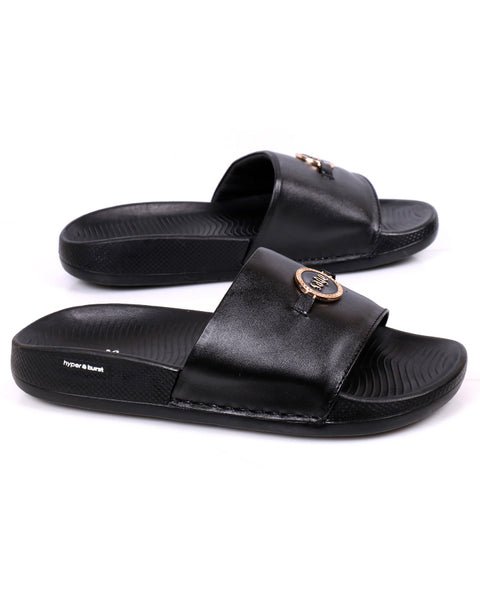 Classic black leather slippers with soft lining and cushioned sole for unmatched comfort. Built with a durable PU sole, they combine elegance with practicality. A must-have for everyday wear and effortless style.- Rs.4,899