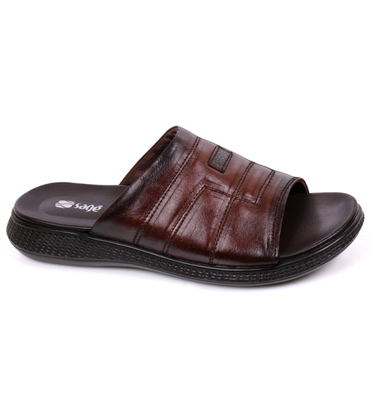 Brown slippers crafted in genuine leather with a medicated cushioned sole. Lightweight and durable, they deliver both comfort and classic elegance.- Rs.5,999