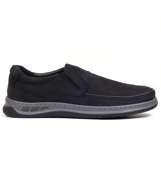 Step into comfort with these black moccasins crafted from premium cow leather. Built with a durable rubber sole and leather lining, they offer long-lasting wear. A classic design that matches effortlessly with casual outfits.- Rs.6,999
