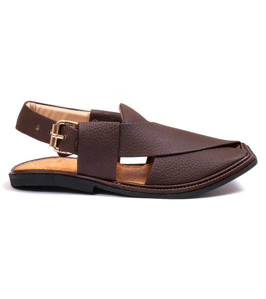 Handcrafted brown leather Charsadda shoes with soft inner soles for comfort. Durable, lightweight, and stylish, these shoes add a refined touch to traditional dressing.- Rs.2,750