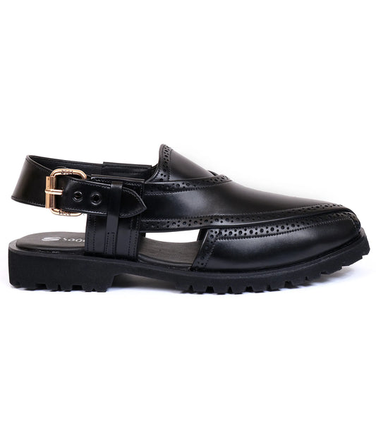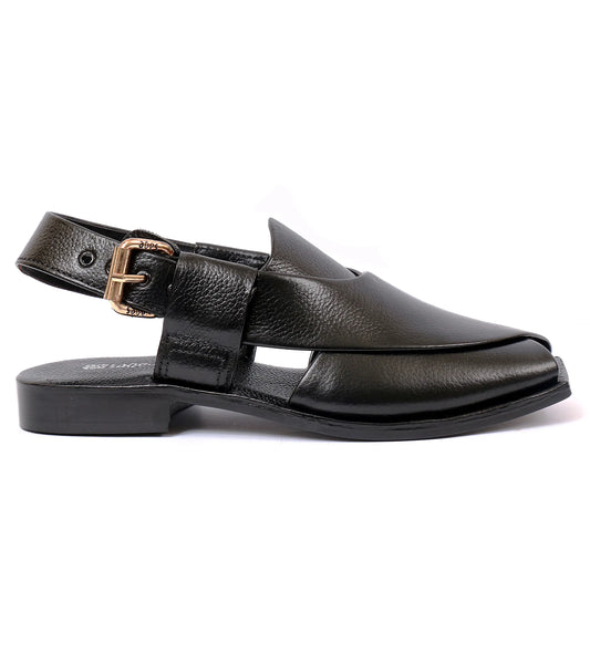 Premium black Peshawari Chapal in cow leather with PU sole. Designed for durability, comfort, and timeless elegance—perfect for casual or formal wear.- Rs.5,999