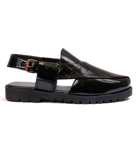 Handcrafted black Charsadda shoes made from premium leather with a strong tire sole. Comfortable and durable, they bring together elegance and tradition for everyday wear.- Rs.2,150