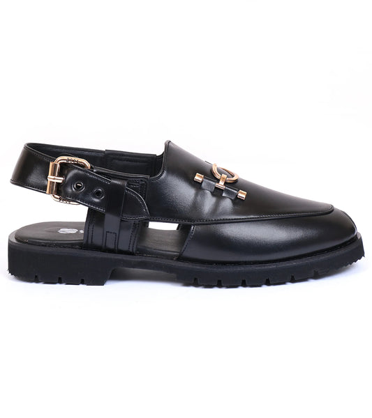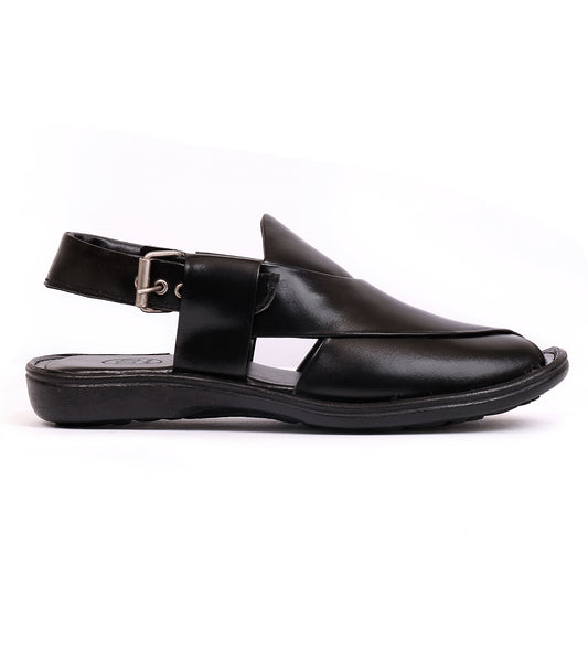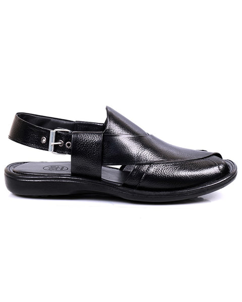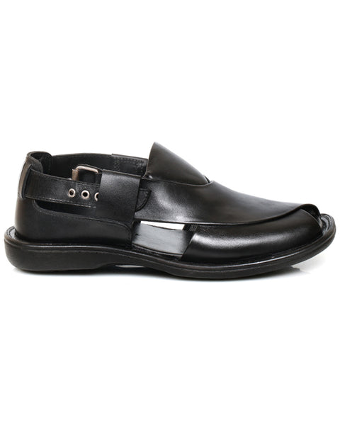 Premium black leather Peshawari chappal offering timeless style and unmatched comfort. Handcrafted from cow leather with PU sole, perfect for formal and casual wear.- Rs.5,999