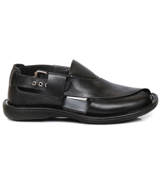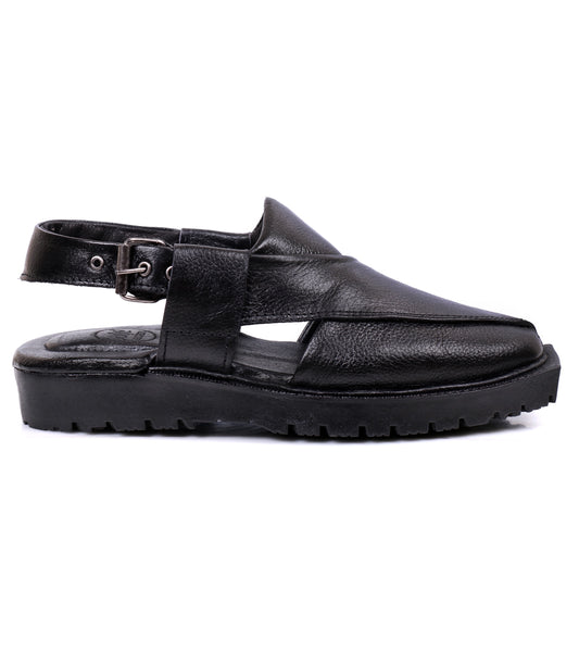 Premium black leather Peshawari chappal offering timeless style and unmatched comfort. Handcrafted from cow leather with PU sole, perfect for formal and casual wear.- Rs.6,299