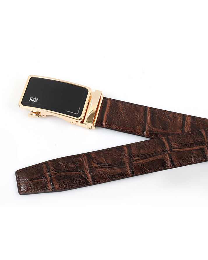 A stylish brown crocodile-style leather belt crafted from high-quality material. Features a durable buckle and adjustable fit for daily comfort. Perfect for casual outfits and everyday wear with a refined touch.