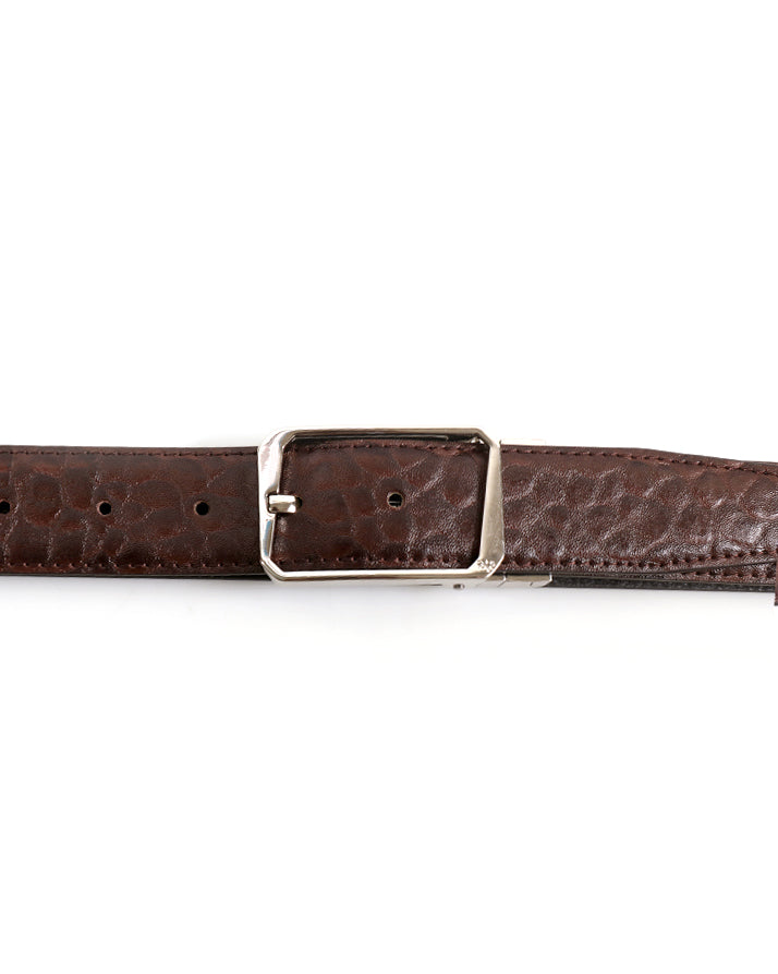 Reversible printed-style belt in black and brown tones for versatile wear. Made from high-quality leather with an adjustable fit and sturdy buckle. Ideal for everyday and casual looks.