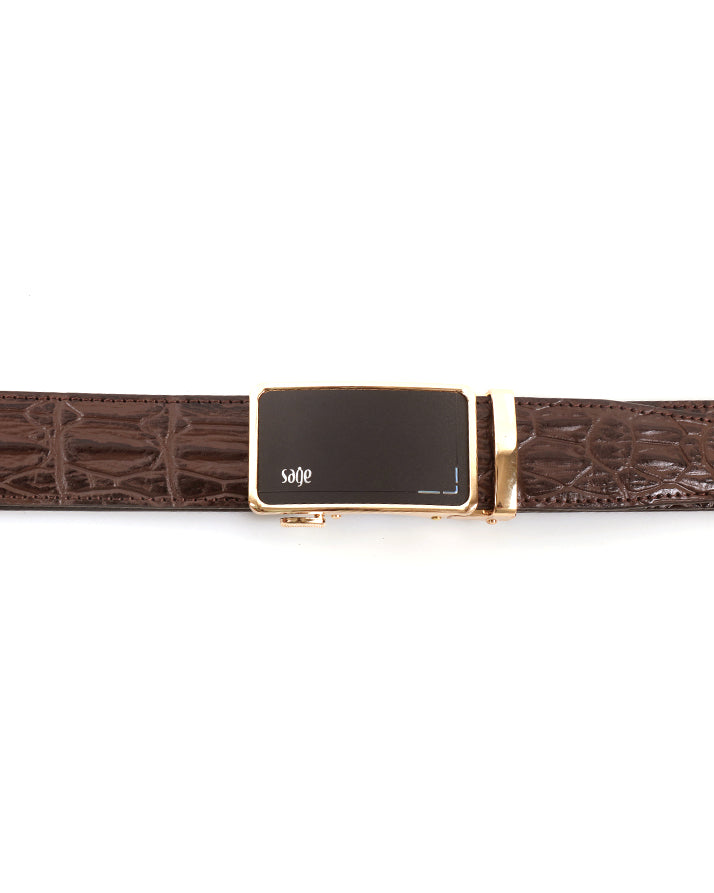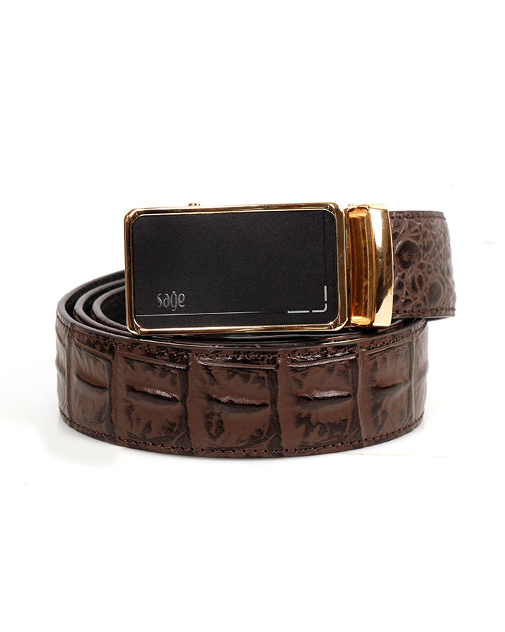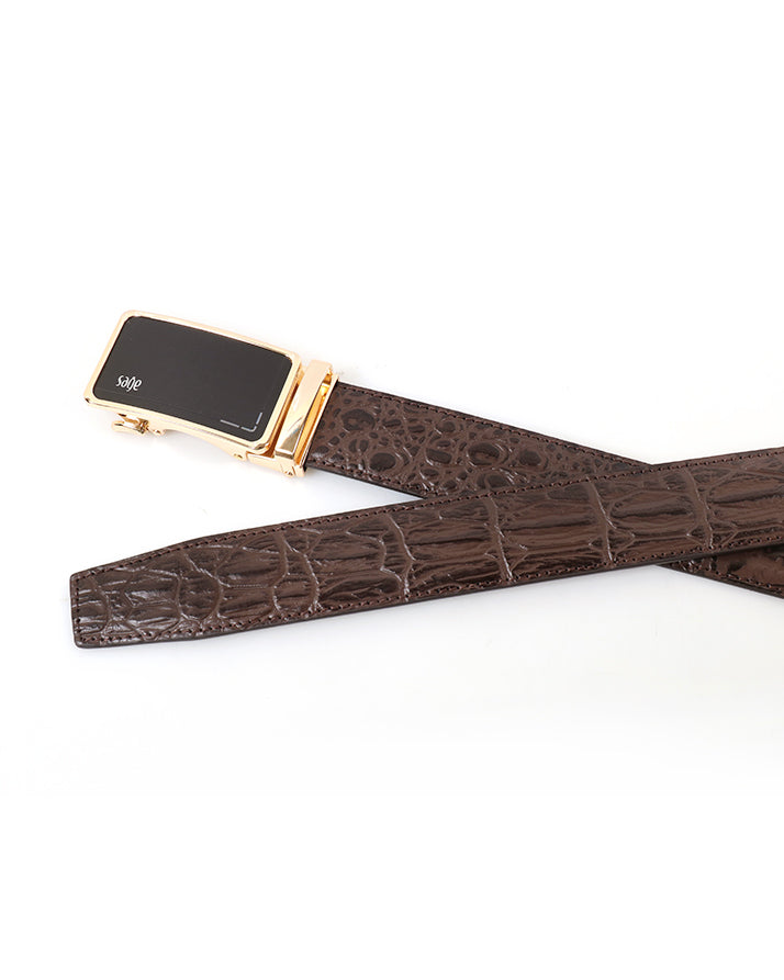 Sophisticated brown crocodile-style belt crafted from genuine leather. Features an adjustable fit and reliable buckle, perfect for everyday use. Adds a refined edge to casual dressing.