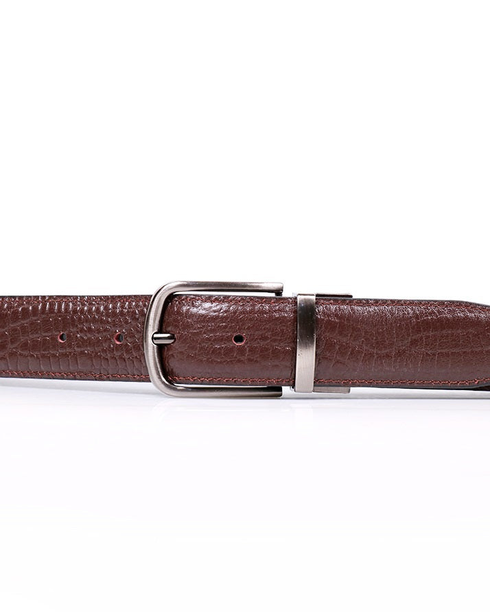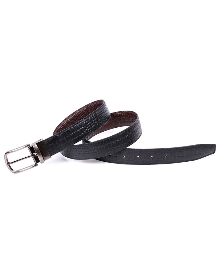 Two-in-one reversible leather belt in classic black and brown. Crafted with a high-quality buckle and adjustable for ease of use. A must-have accessory that offers versatility for every occasion.