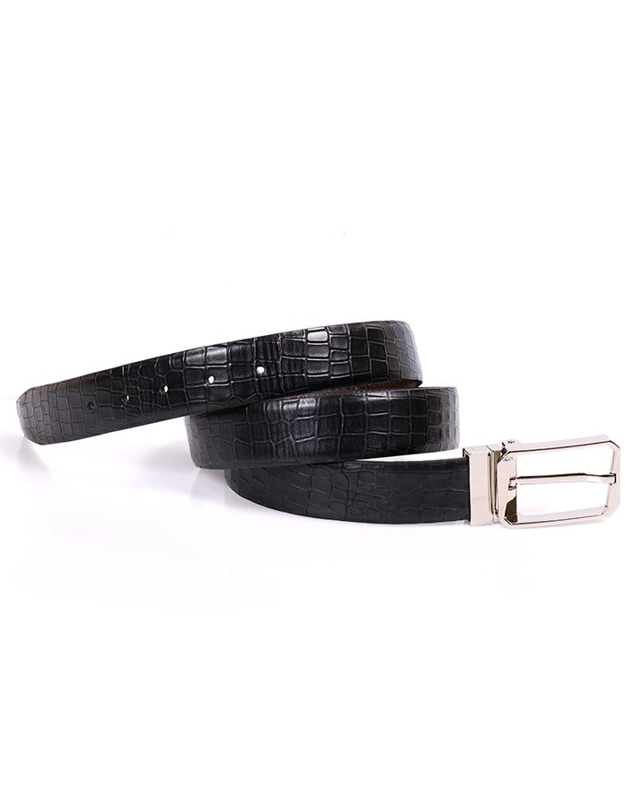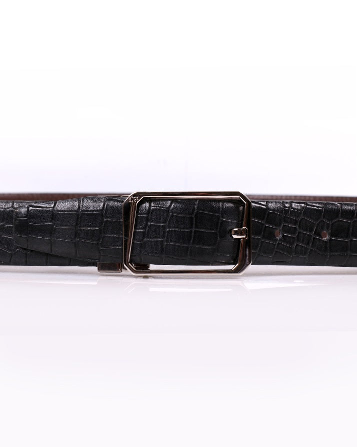 Reversible two-in-one belt in brown and black, crafted for versatile styling. Built with a durable buckle and adjustable design for comfort. Perfect for men seeking both practicality and elegance.