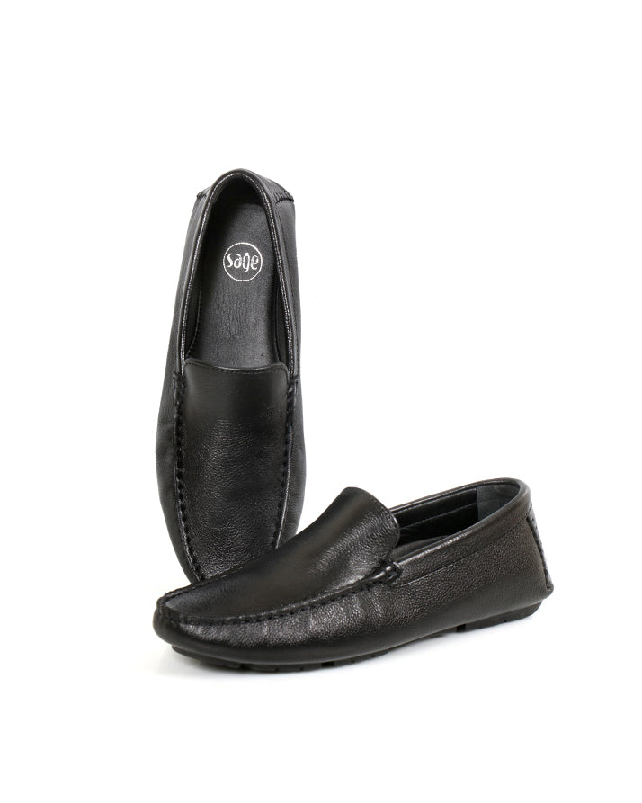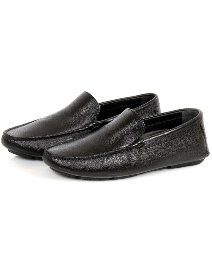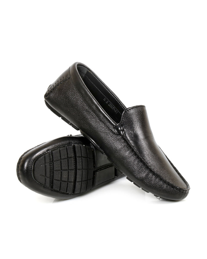 Step out in confidence with these black leather moccasins, made from genuine cow leather. Built with a strong rubber sole and soft leather lining, they ensure durability and comfort. The sleek design pairs effortlessly with casual outfits, making them a wardrobe essential.