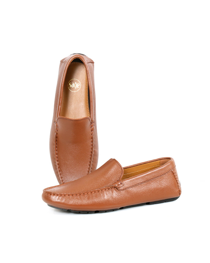 Designed in tan cow leather, these moccasin shoes blend sophistication with comfort. A durable rubber sole and leather inner lining keep your feet supported all day. Stylish and versatile, they’re perfect for casual outings or relaxed office wear.