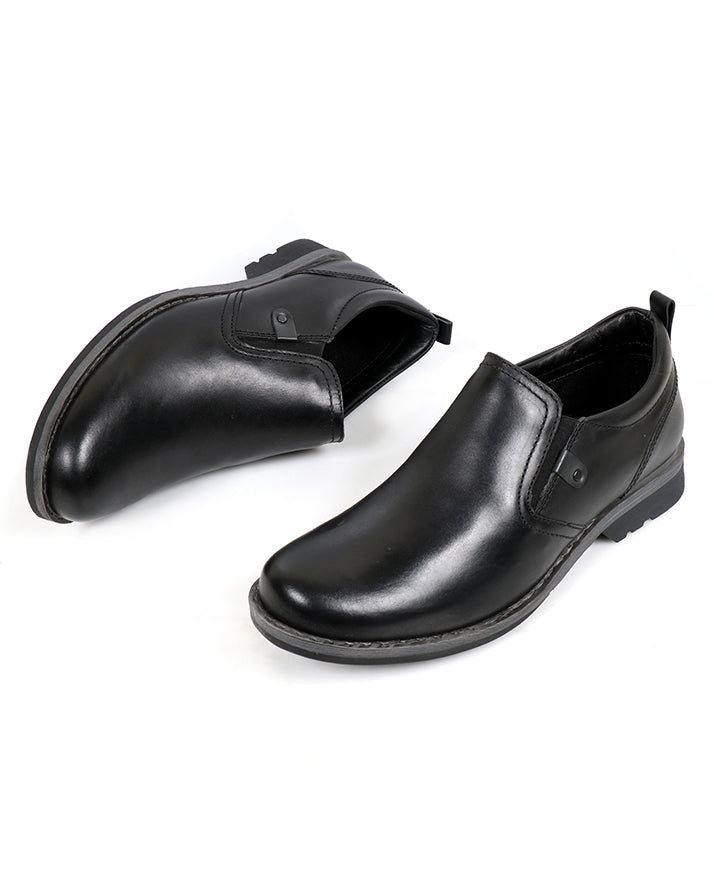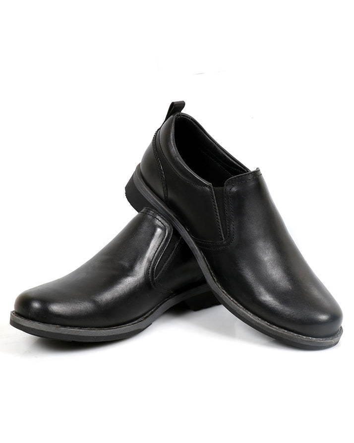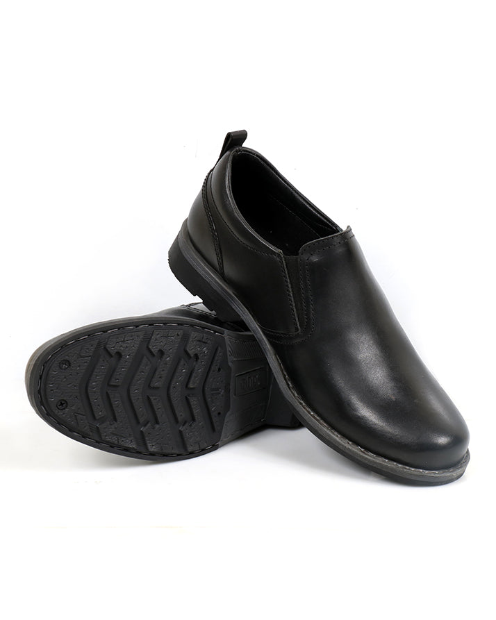 Black half-long casual shoes made from milled cow leather with a rubber sole. Fabric lining ensures breathable comfort, while the classic design adds versatility to your wardrobe.