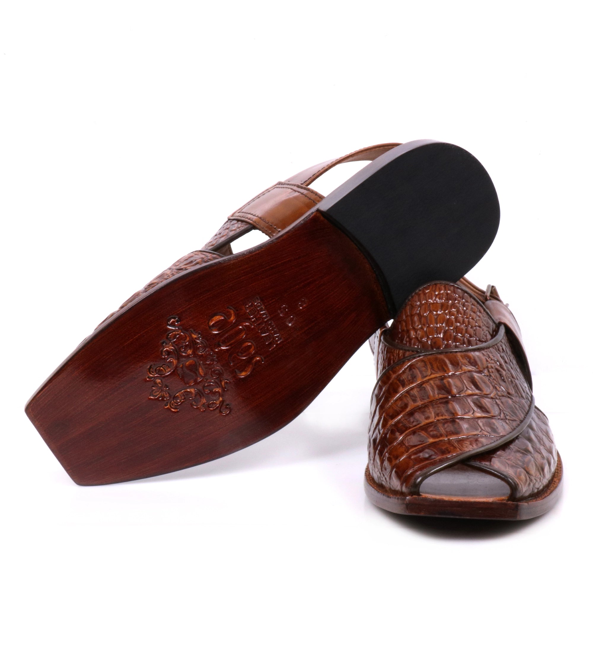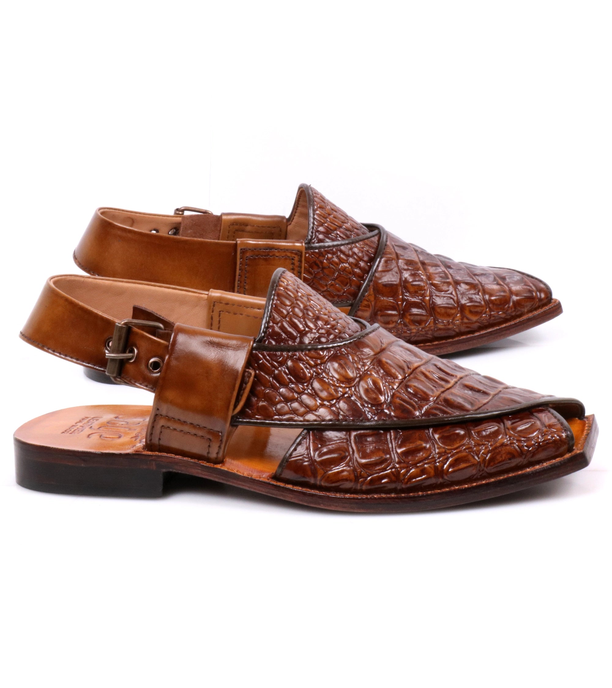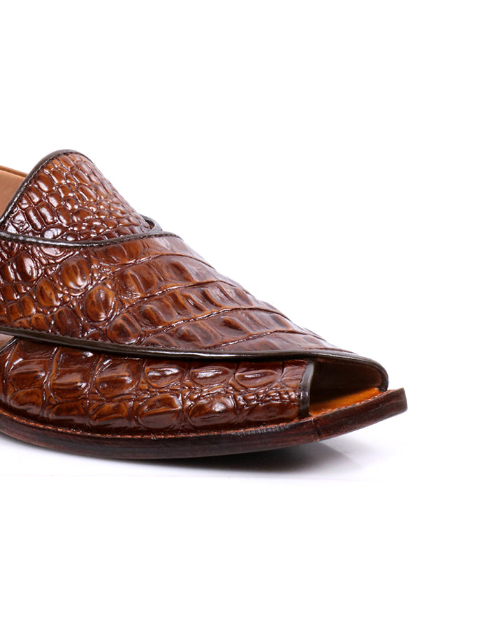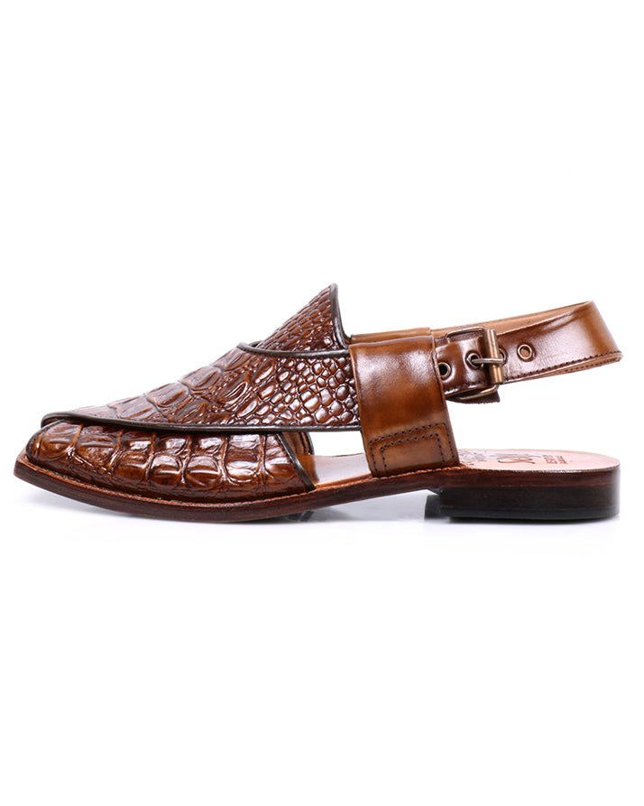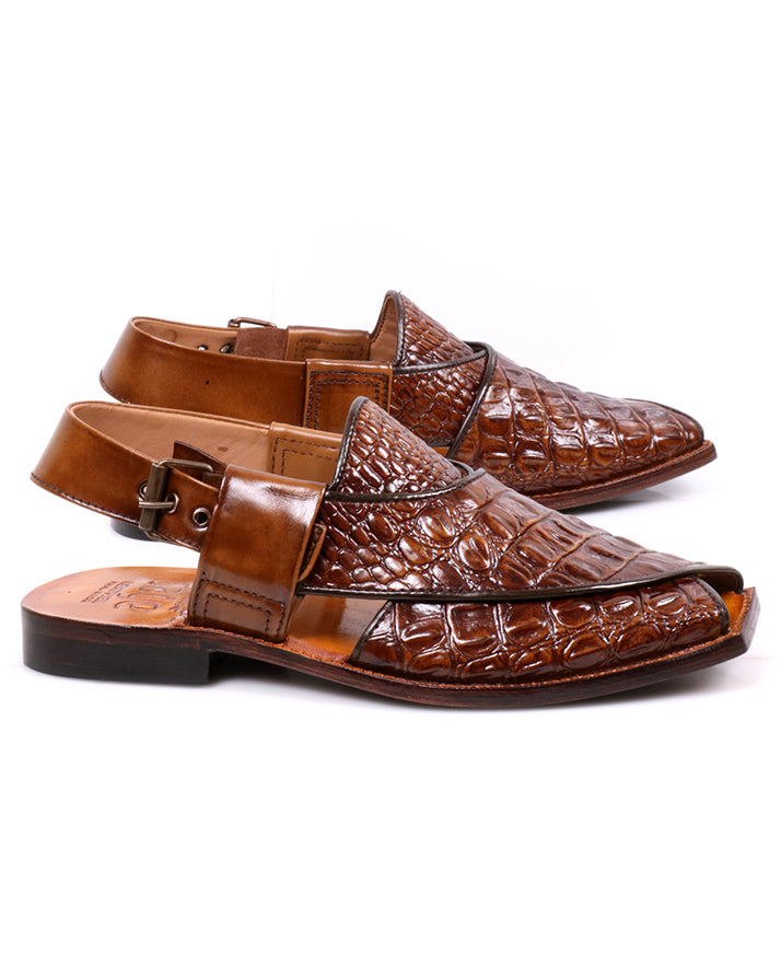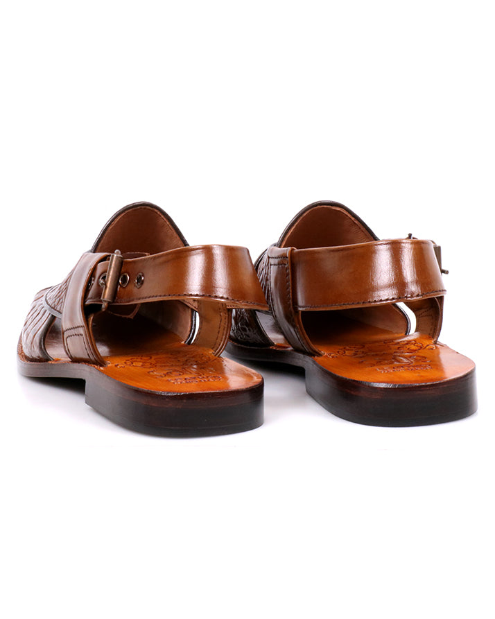 A classic brown Peshawari Chapal crafted from milled leather with a leather sole and lining. Lightweight, soft, and durable with an elegant design for everyday comfort.