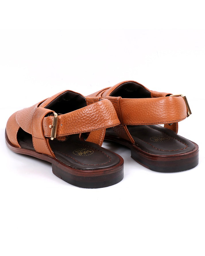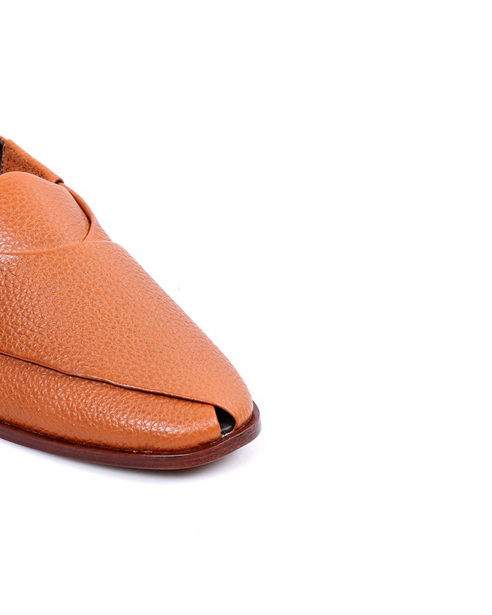 Mustard-toned Peshawari Chapal made with milled leather, featuring leather sole, lining, and inner sole. Lightweight, comfortable, and stylish with a classic appeal.