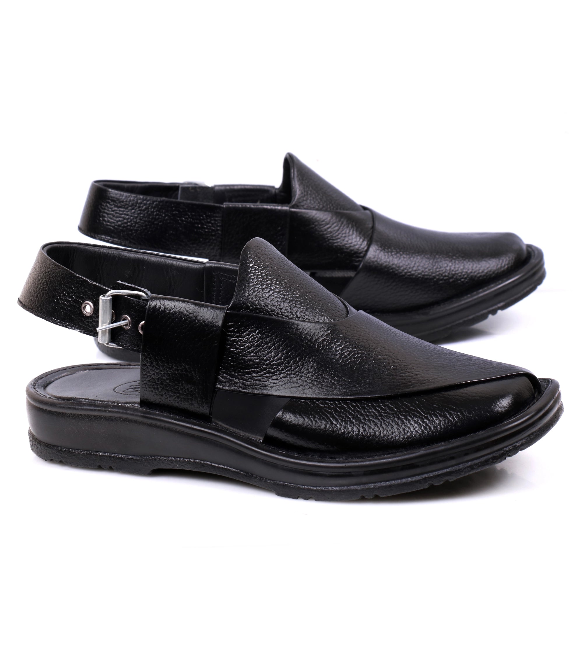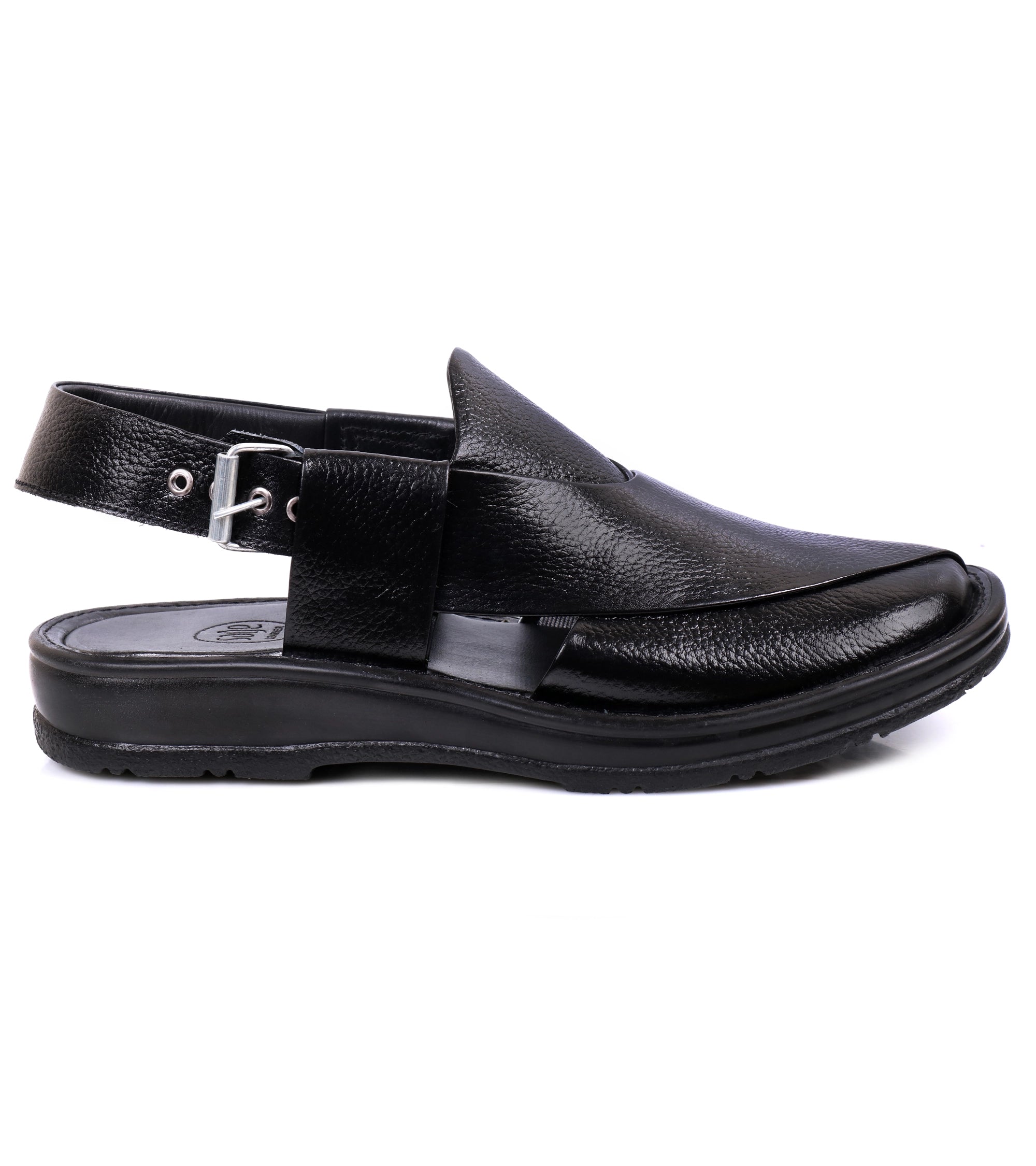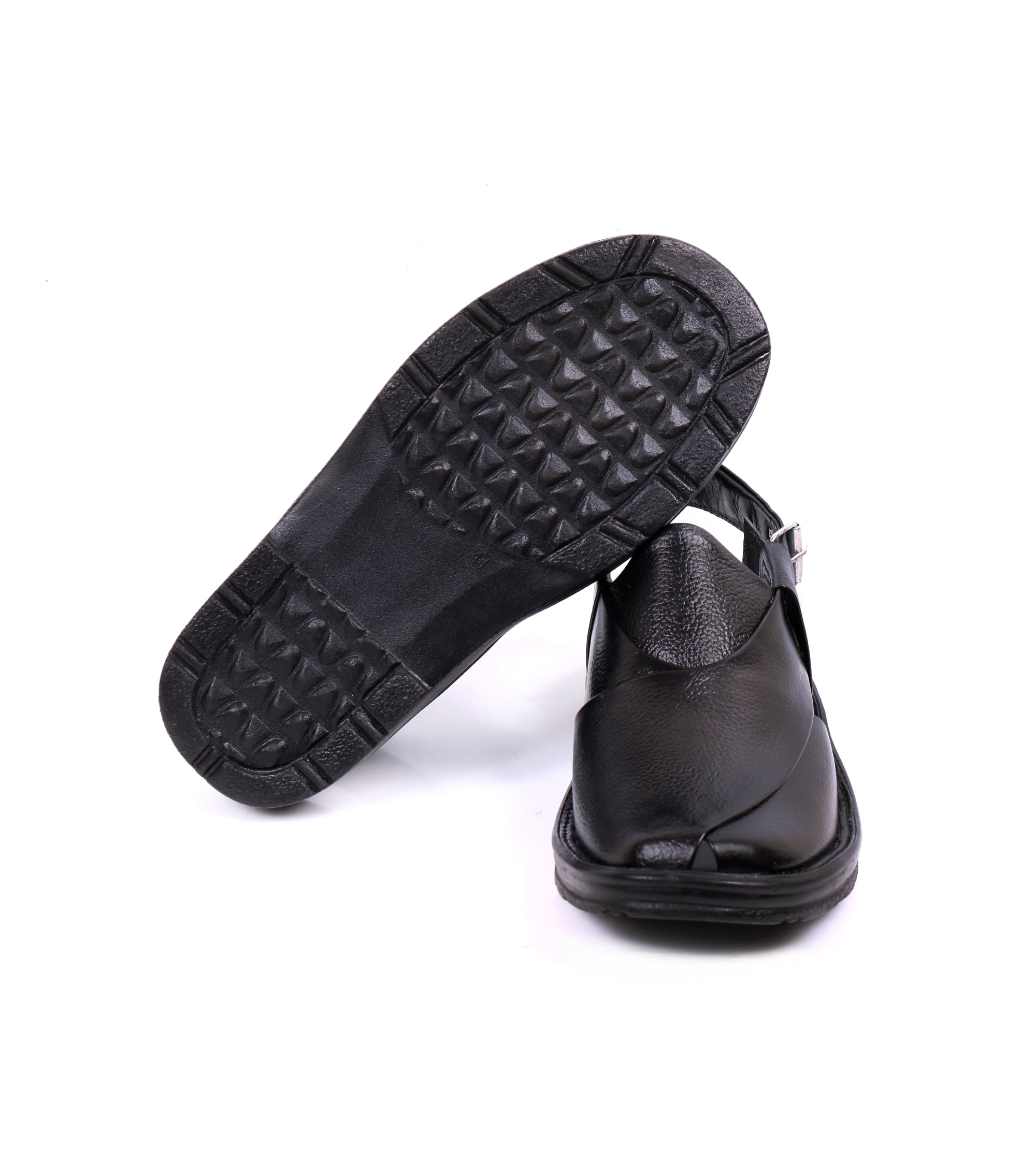 Stylish black chapal made from premium cow leather with soft PU sole. Lightweight yet durable, offering a...
