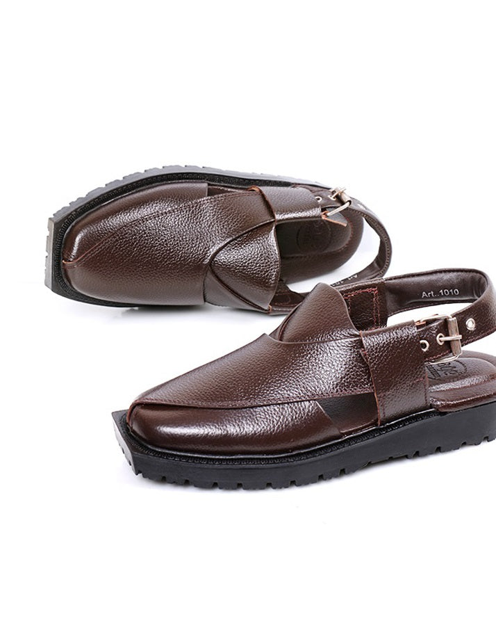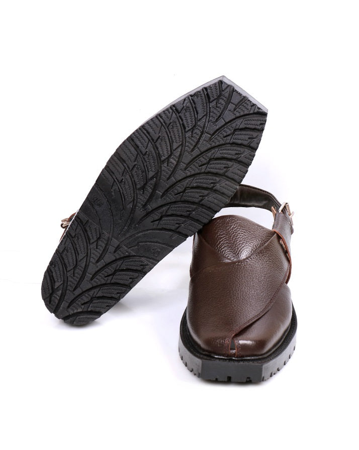 Brown Norozi Chapal crafted from high-quality cow leather with soft rubber sole. Comfortable, elegant, and perfect for both casual and semi-formal wear.