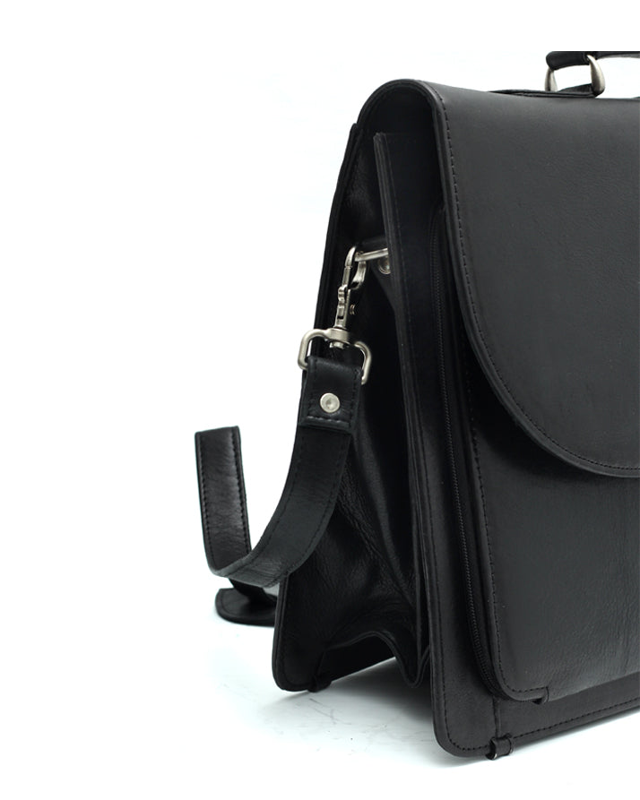 Elegant leather office and laptop file bag with multiple compartments, secure closure, soft shoulder strap, and a professional finish.
