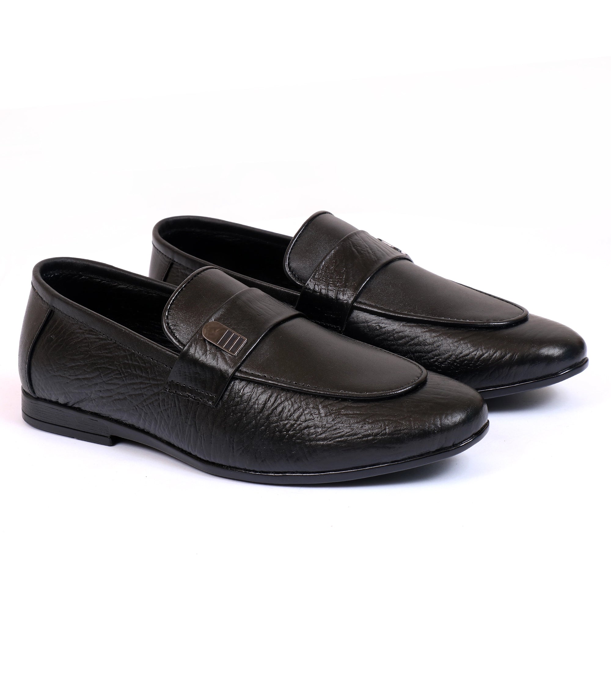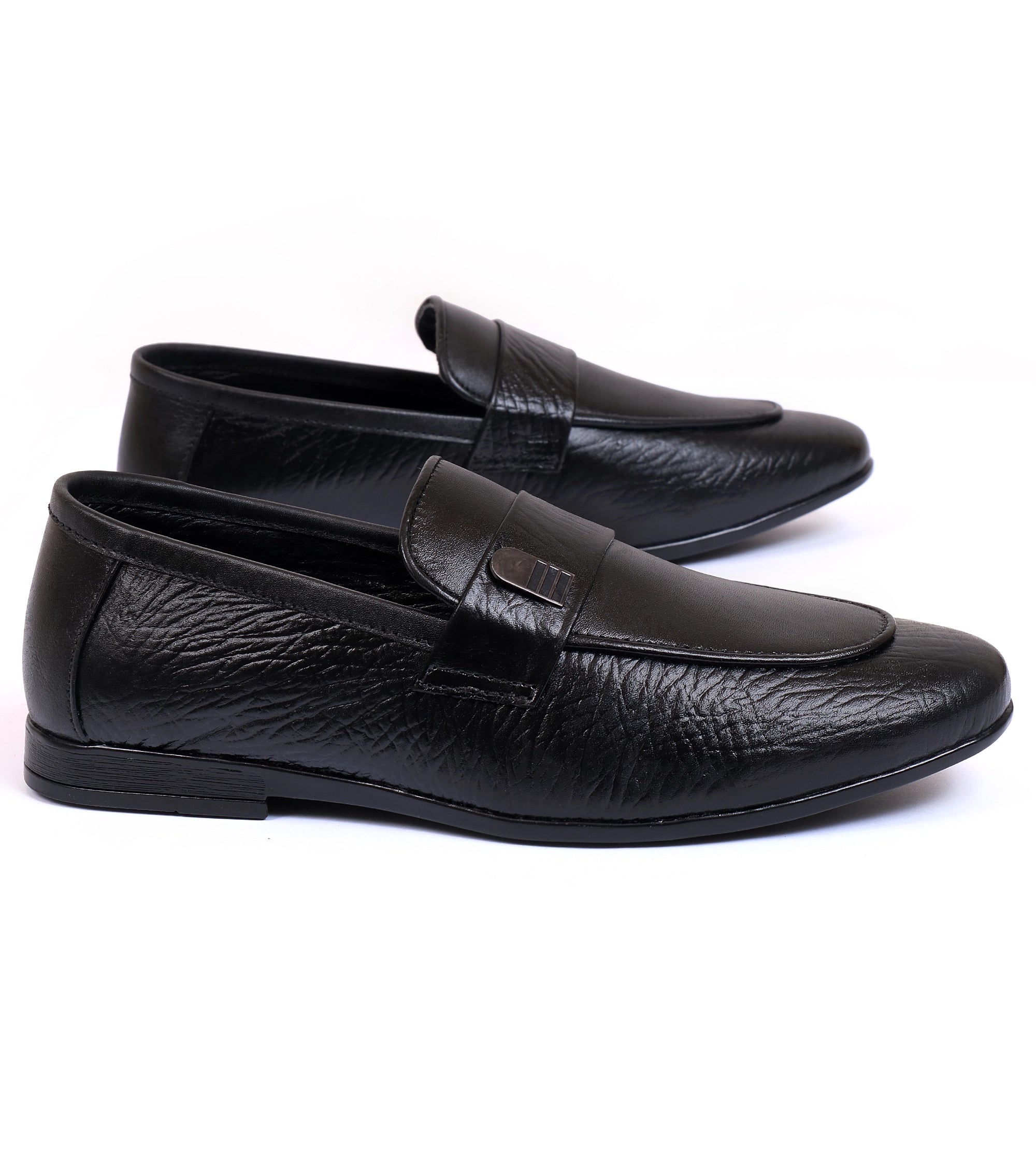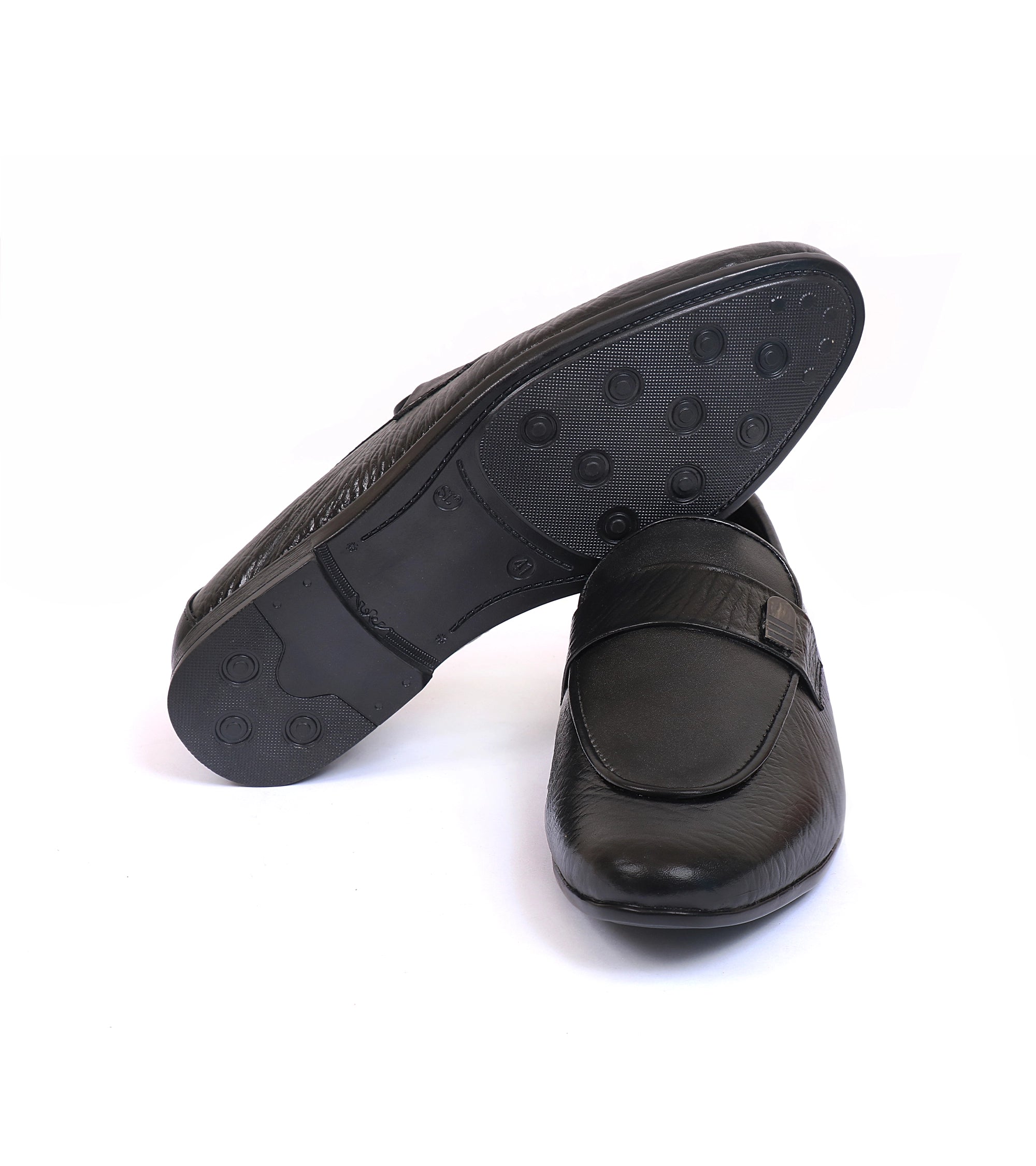 Elegant and durable, these black cow leather slip-ons are designed for comfort. The rubber sole provides all-day ease, while the classic design makes them a versatile formal choice.