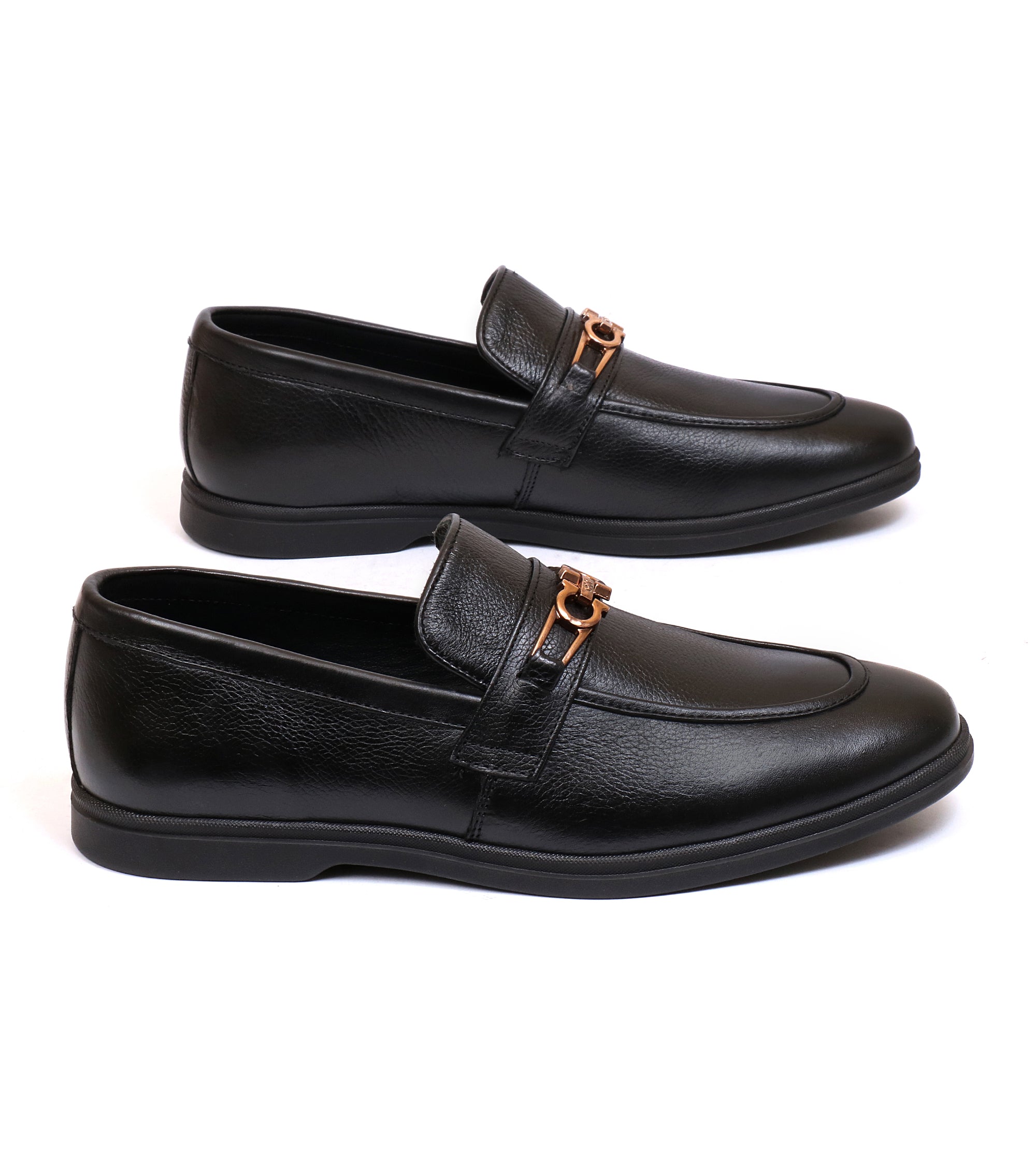 Black half-long casual shoes made from milled cow leather with a rubber sole. Fabric lining ensures breathable comfort, while the classic design adds versatility to your wardrobe.