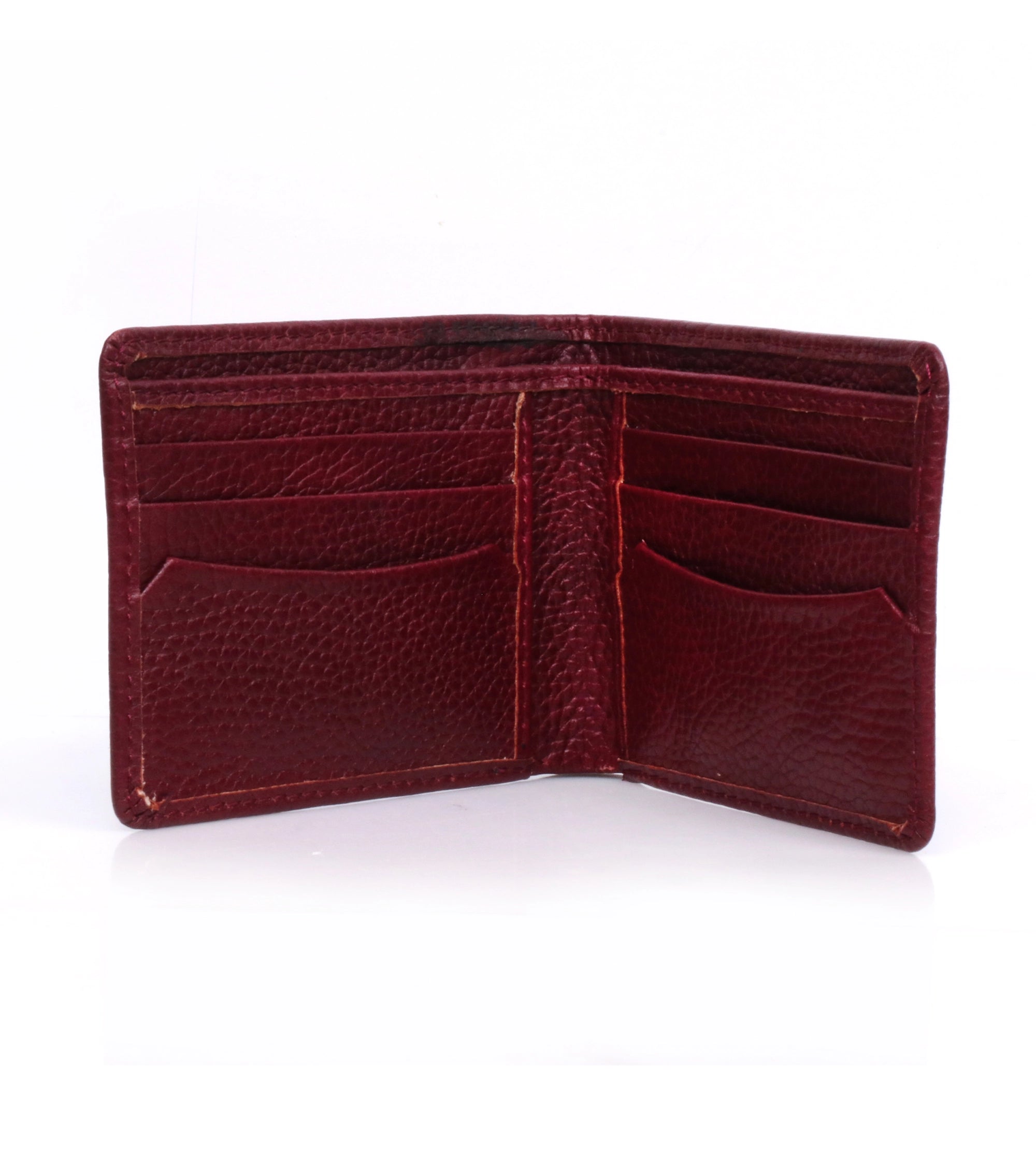 This maroon and mustard wallet is crafted from milled cow leather with extra card slots for functionality. Stylish and durable, it adds a modern touch to daily essentials. A smart companion for men.