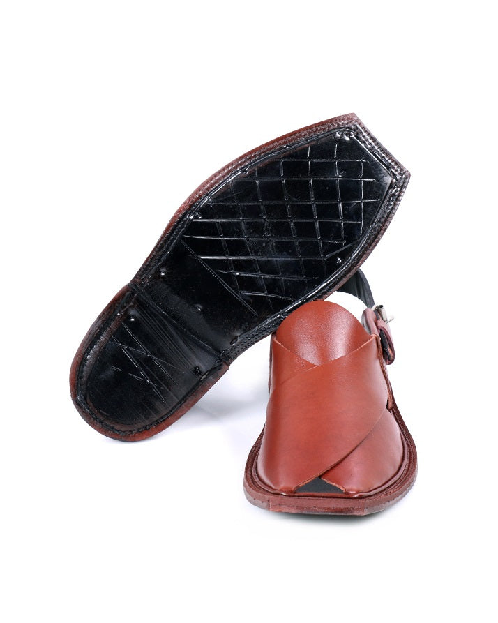 Traditional mustard leather Charsadda shoes with a tire sole for durability and soft comfort. Featuring elegant craftsmanship, these classic shoes offer both cultural charm and long-lasting wear.