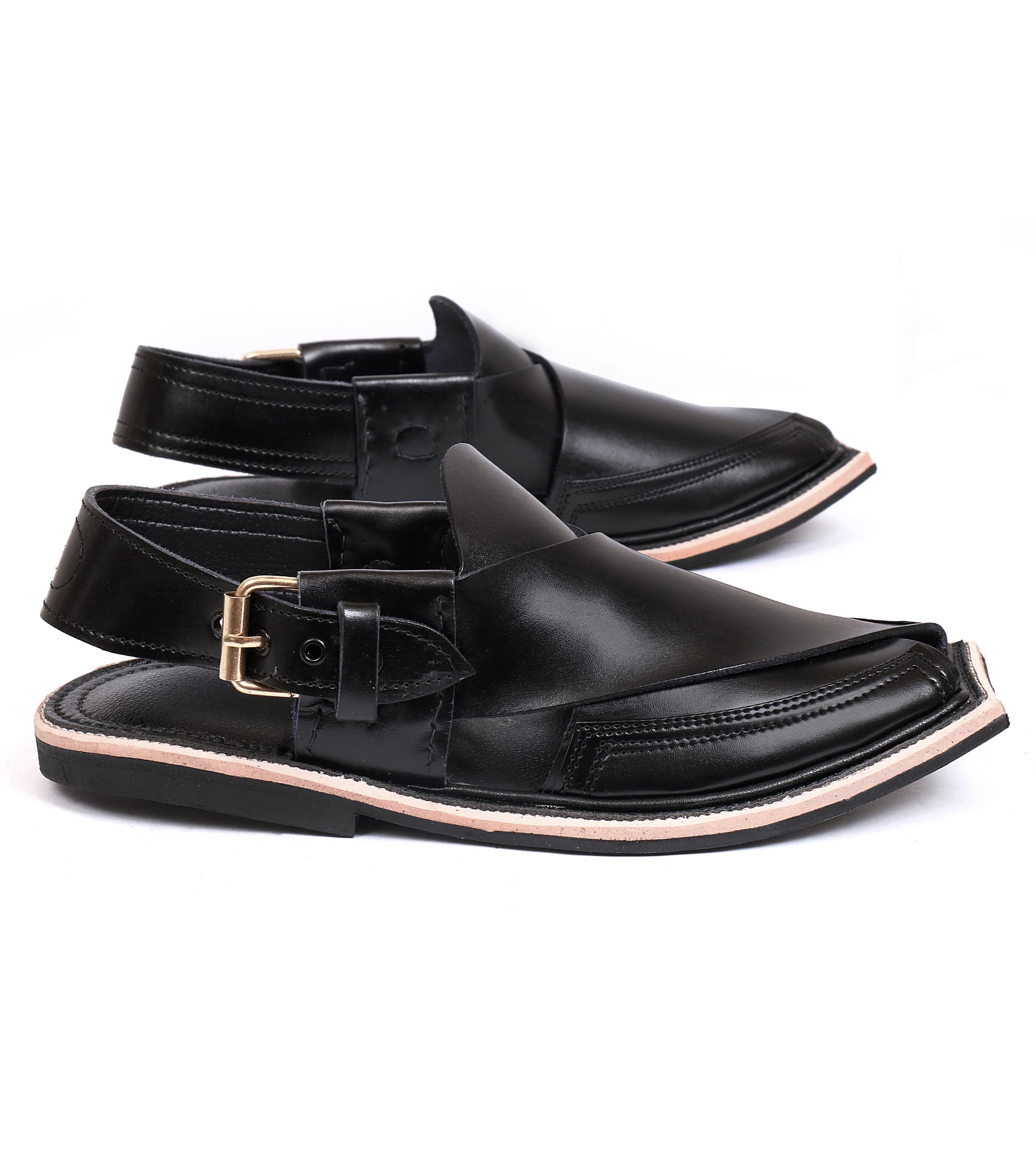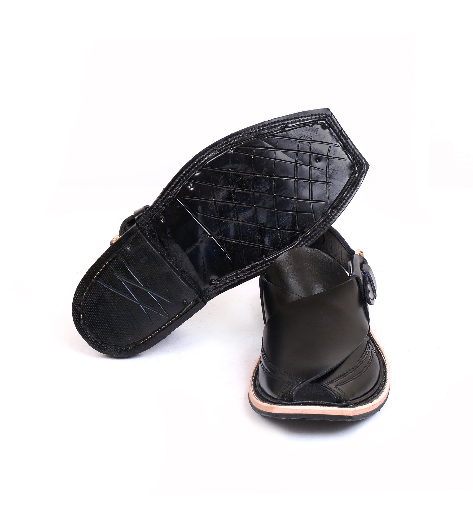 Handcrafted black Charsadda shoes made from premium leather with a strong tire sole. Comfortable and durable, they bring together elegance and tradition for everyday wear.