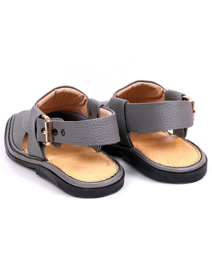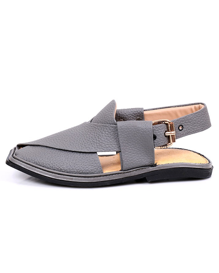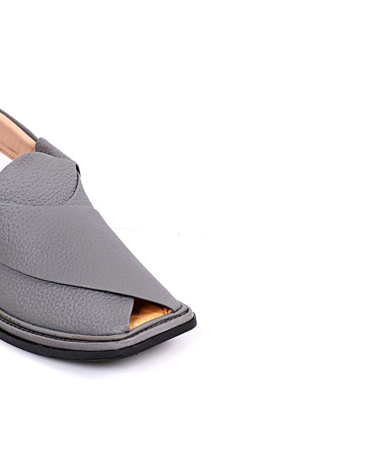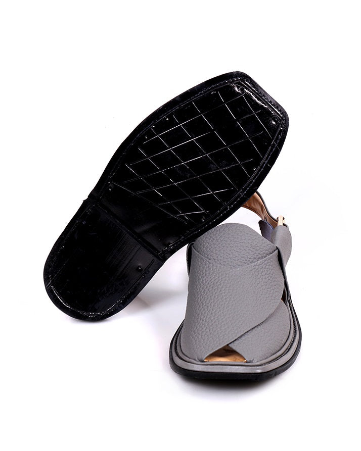 These grey and black milled leather Charsadda shoes are light, durable, and designed for comfort. Their traditional design and robust sole make them an essential addition to your footwear collection.