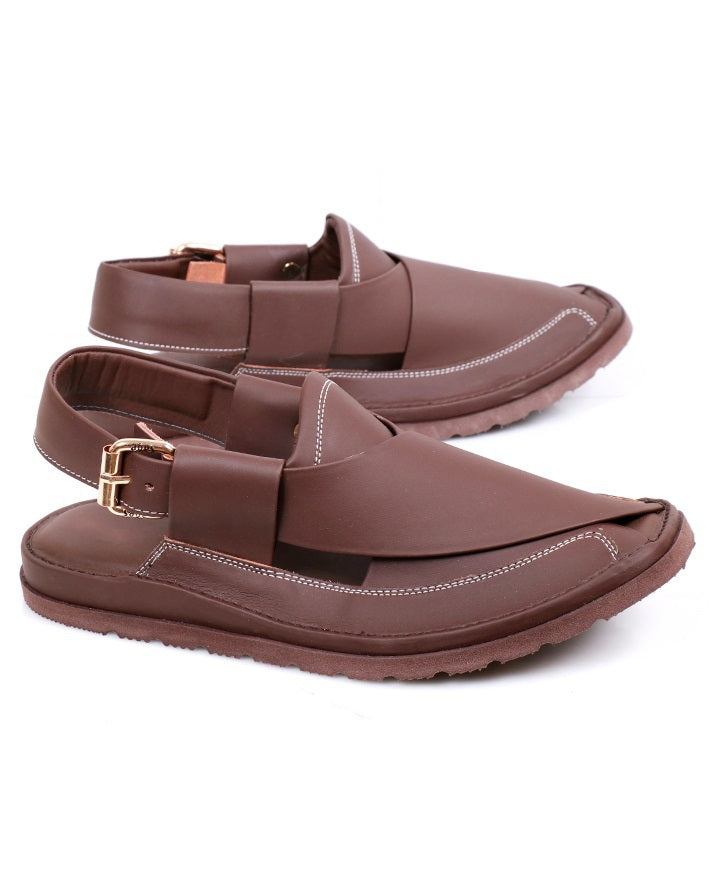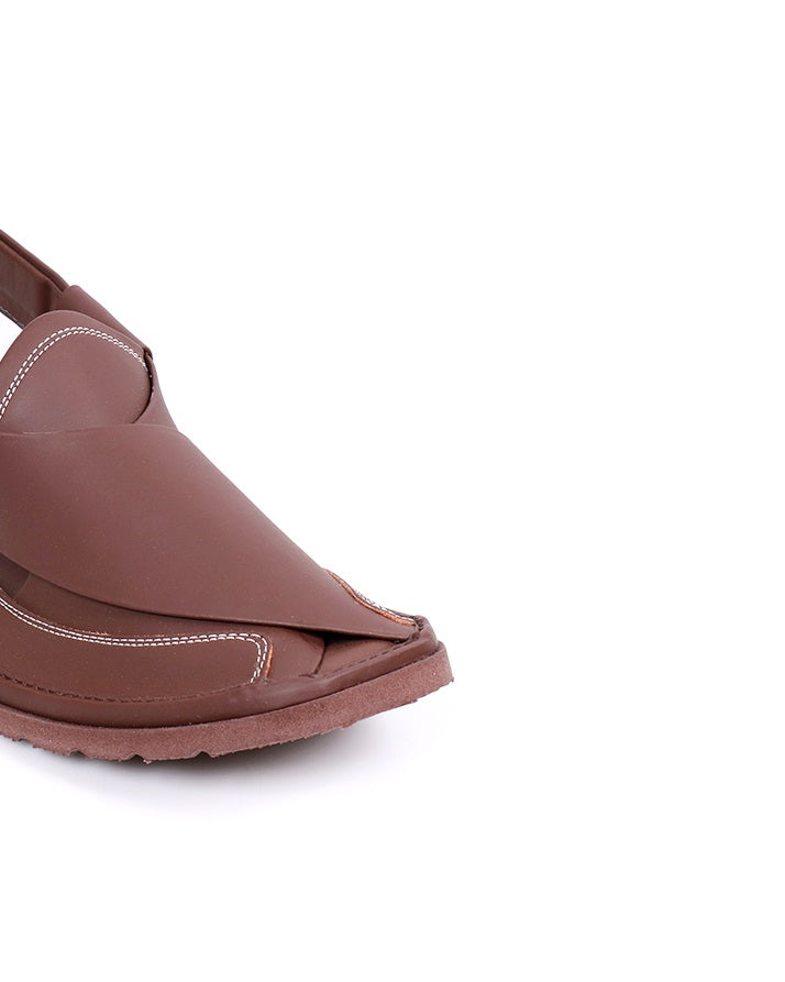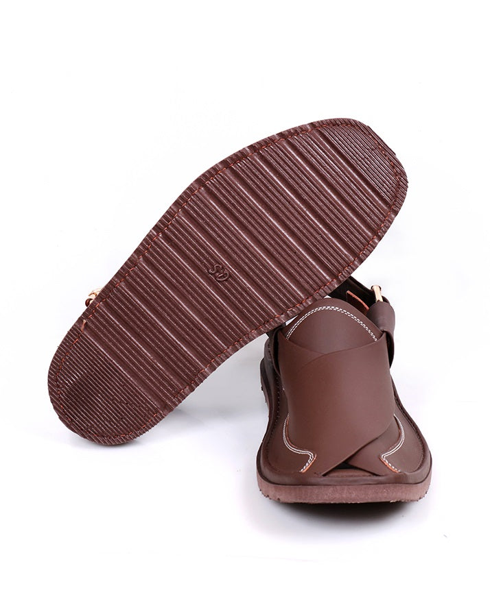 Elegant brown leather Charsadda shoes with a TPR sole for flexibility and durability. Lightweight and comfortable, they are designed for men who value style, tradition, and all-day comfort.