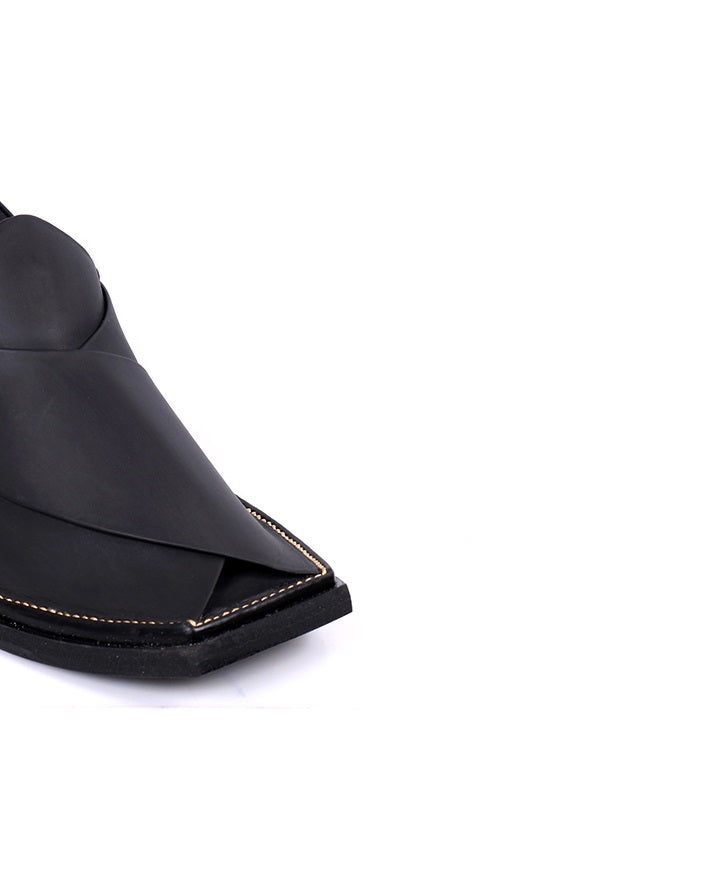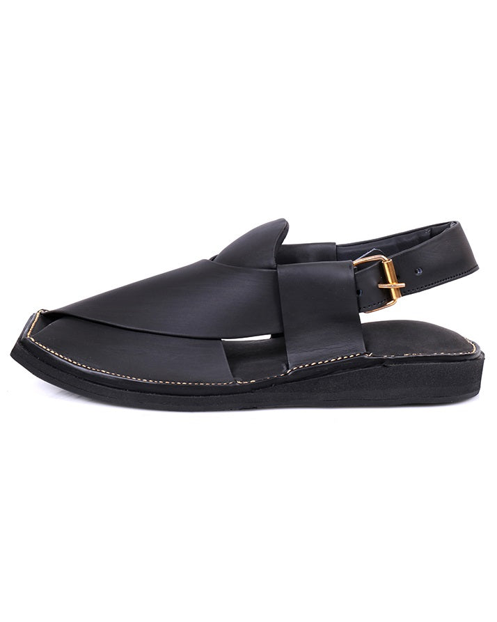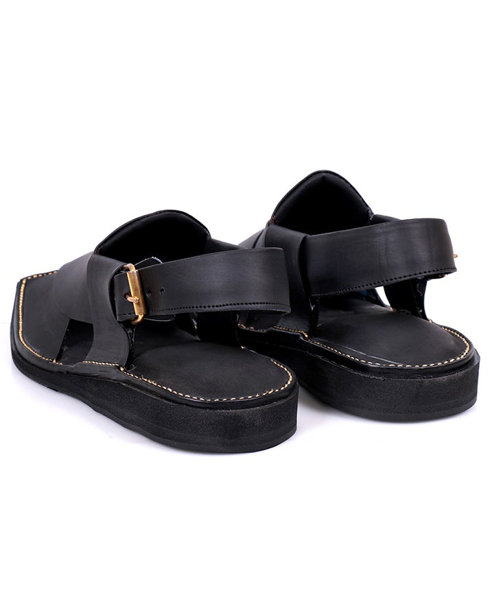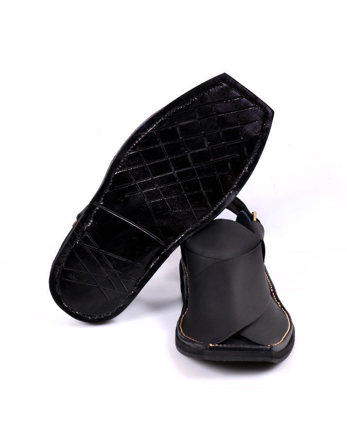 Brown-on-brown leather Charsadda shoes with a tier sole, offering durability and light comfort. Their classic design makes them versatile for cultural and casual wear.