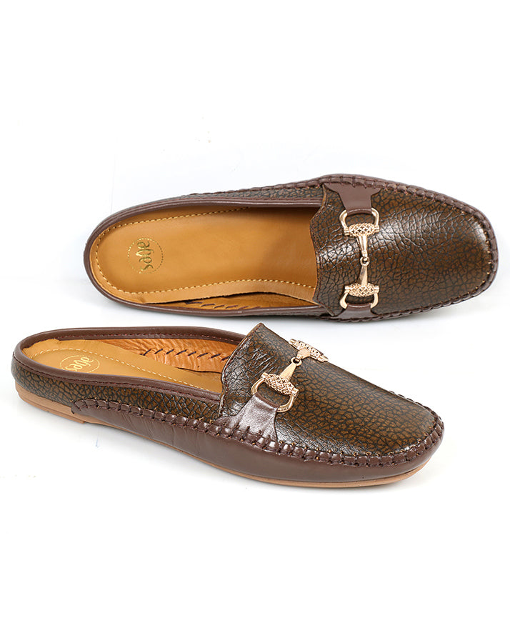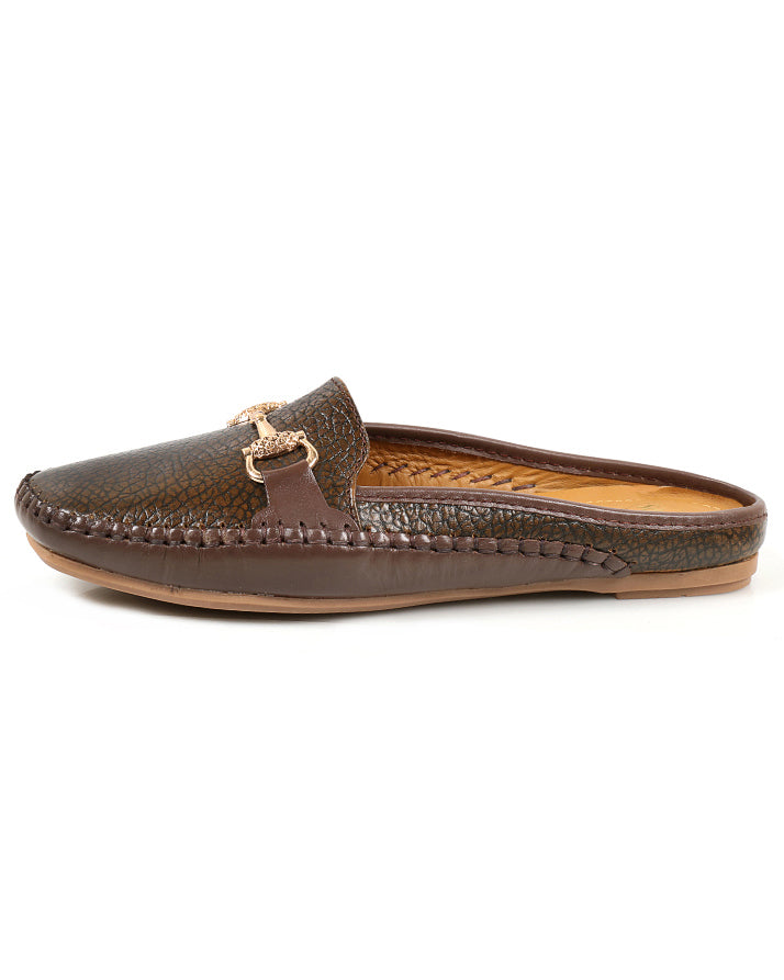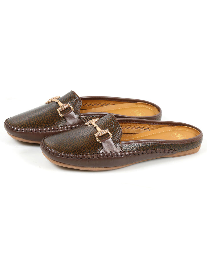 Brown backless cow milled leather shoes offering comfort and durability. Perfect for casual outings, office wear, or everyday stylish use.