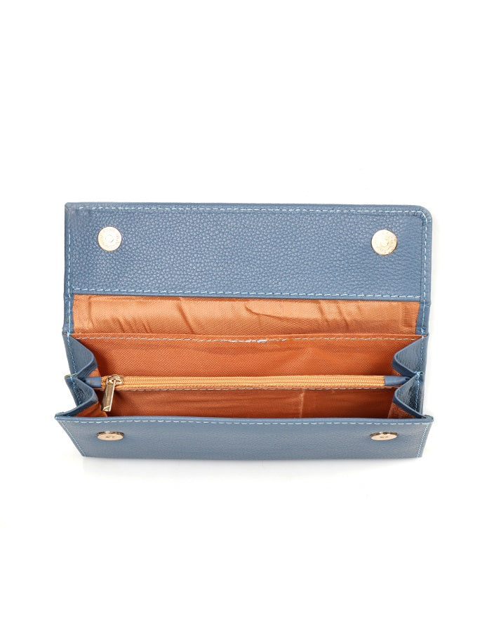 Colorful ladies leather wallet in yellow, red, and blue. Lightweight, elegant, and practical with multiple pockets and card holders, ideal for everyday use.