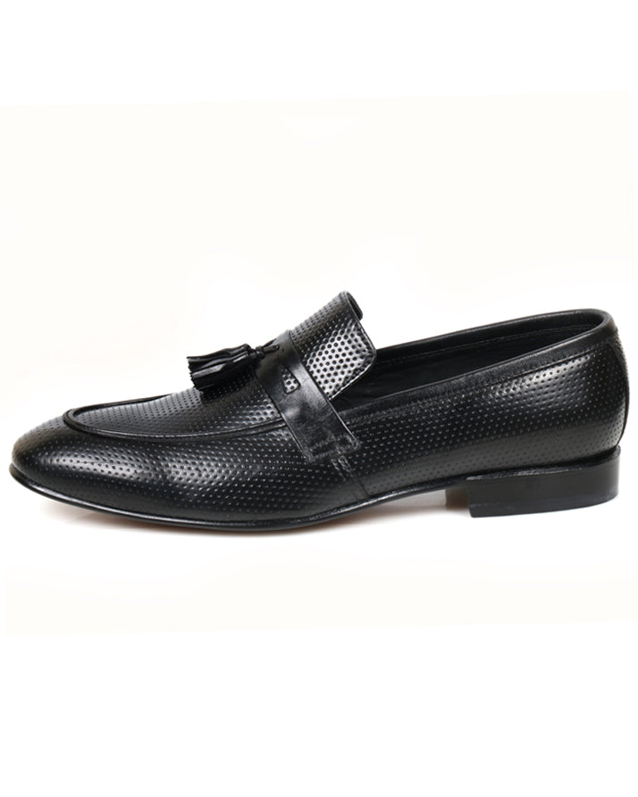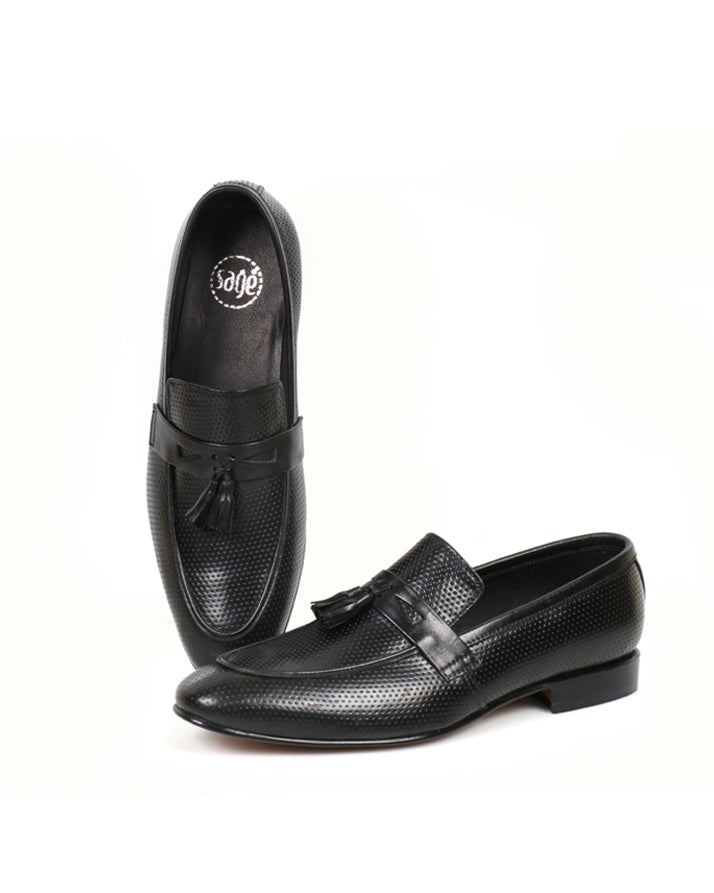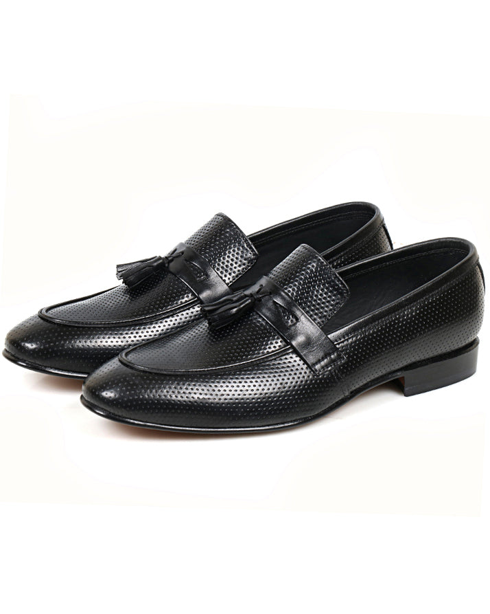 Elegant black leather tassel loafers for men. Perfect blend of classic design, comfort, and durability for office...
