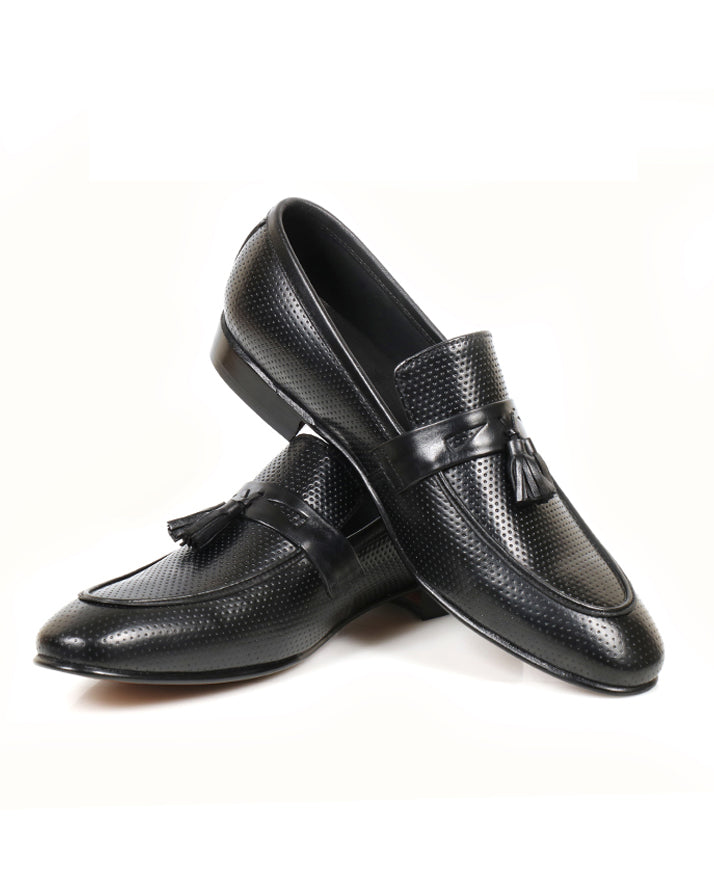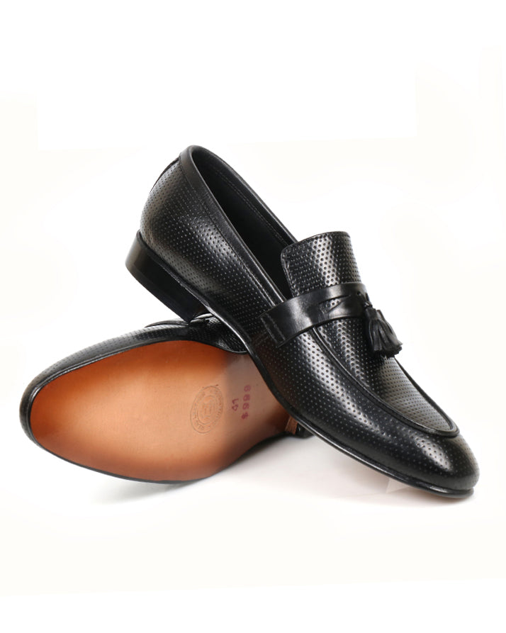 Elegant black leather tassel loafers for men. Perfect blend of classic design, comfort, and durability for office and formal occasions.