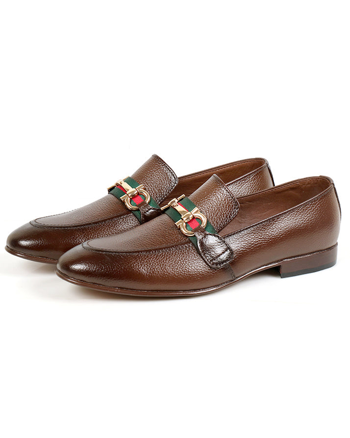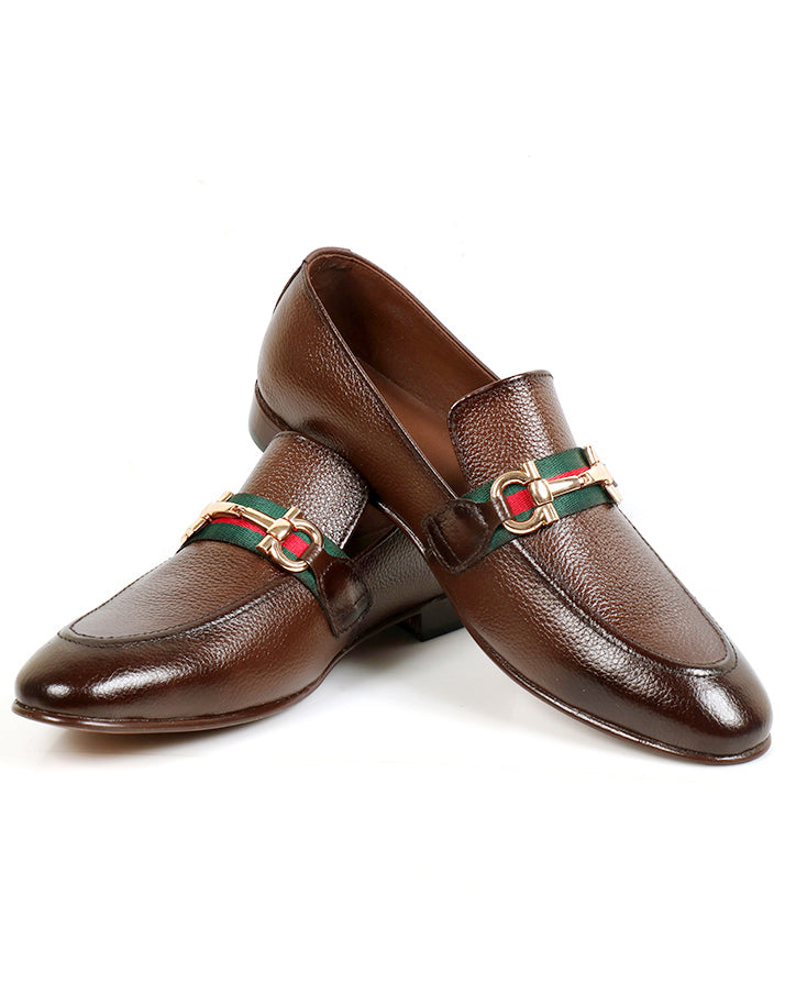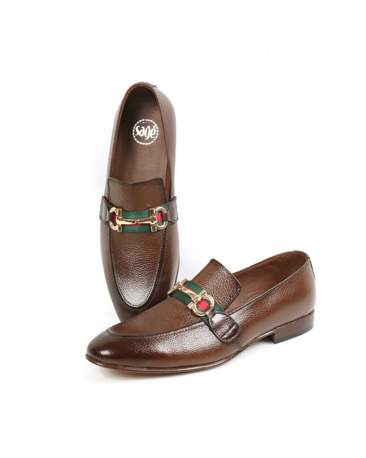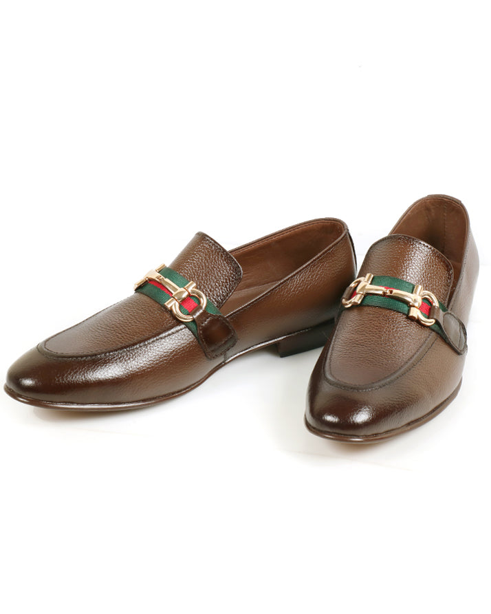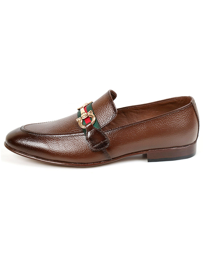 Brown formal slip-on shoes crafted from milled cow leather. Comfortable and durable with a refined look, ideal for office or formal events.