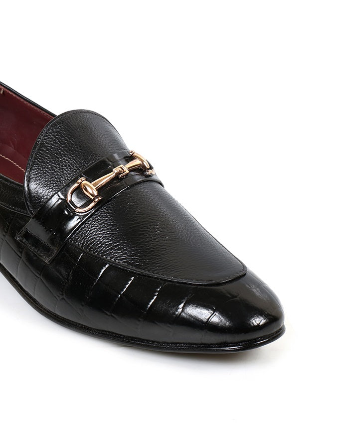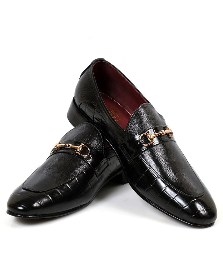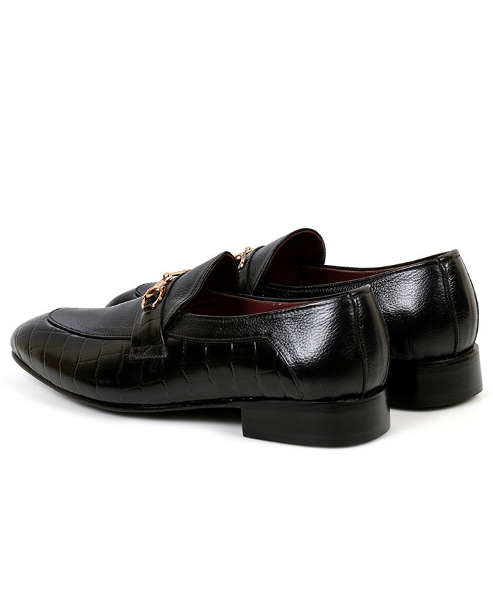 Black formal slip-on shoes in milled cow leather. Timeless style with comfort and durability for office and formal occasions.