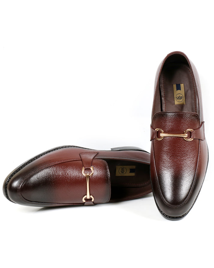 Maroon formal slip-on shoes made from premium cow milled leather. Comfortable, durable, and stylish—perfect for formal gatherings and office wear.