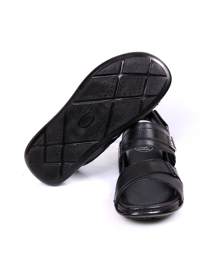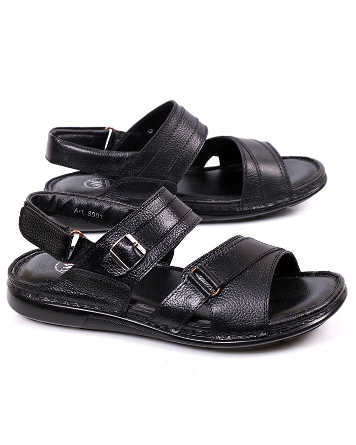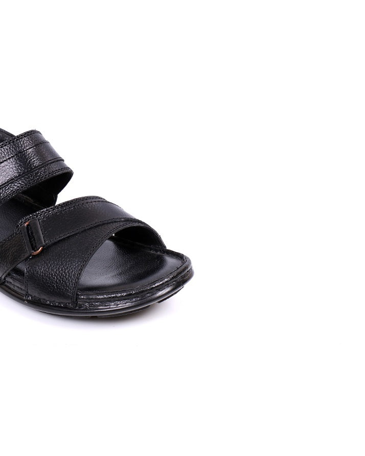 Black men’s leather sandals made from cow milled leather. Soft, flexible sheet sole with stylish and durable design for all-day comfort.