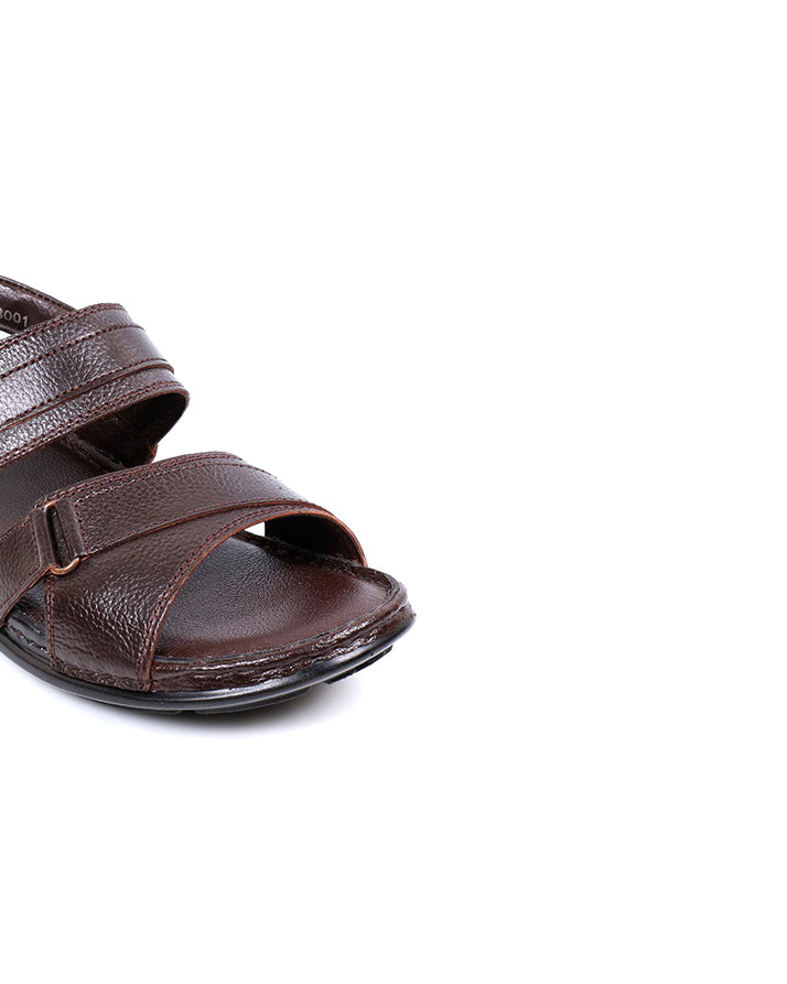 Brown men’s leather sandals crafted from cow milled leather. Soft, flexible sole with comfortable and stylish design for daily and semi-formal wear.